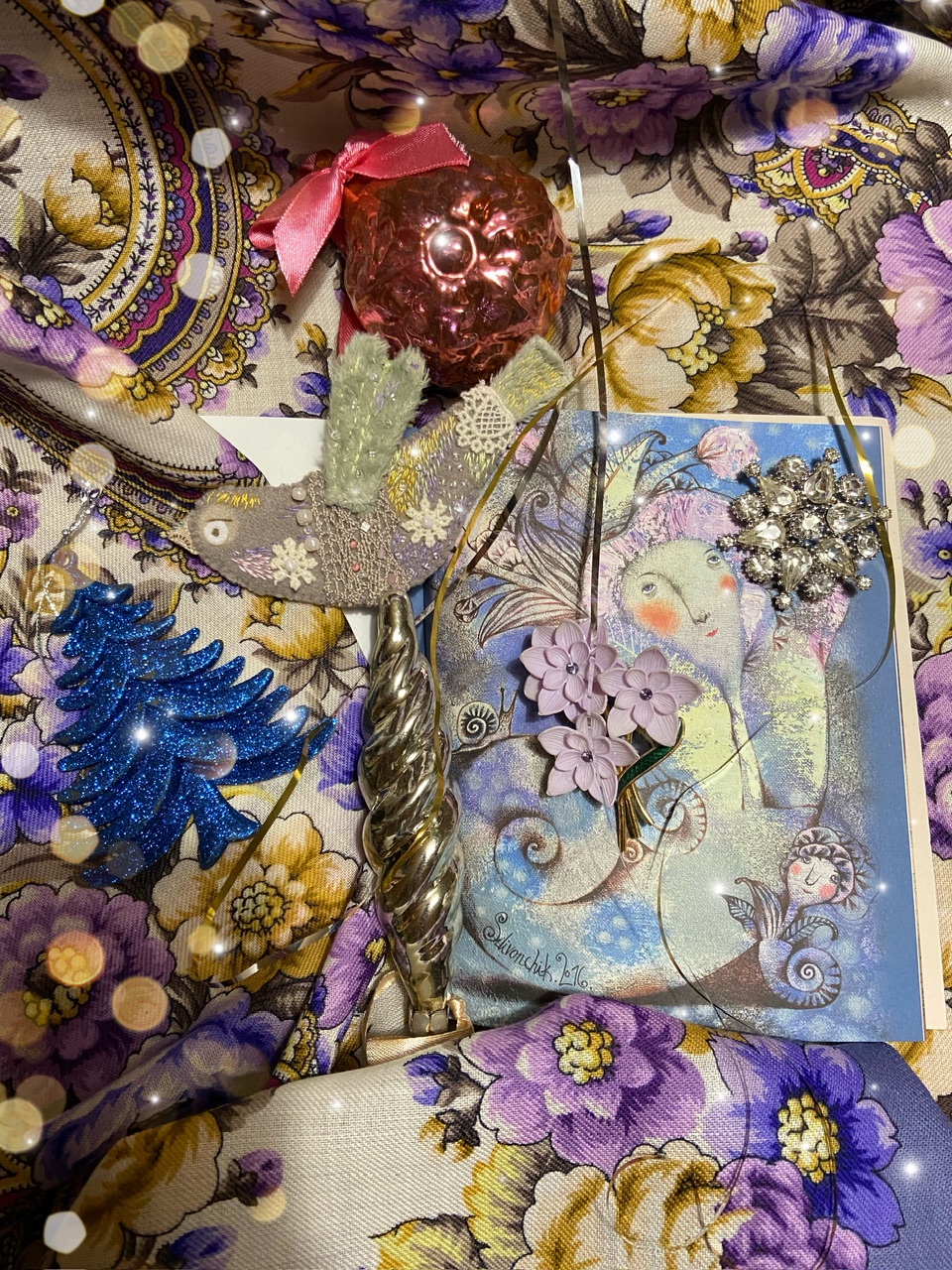 Елена А, сказочно, волшебно! Обожаю творчество Анны Силивончик. Как тут сошлось всё: времена года, птичка, винтажные ёлочные игрушки, платок, картина. Прекрасно