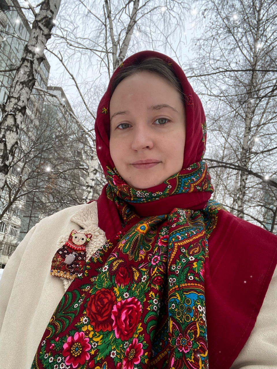 Действительно, прекрасная ::P И текстильная брошь интересная, по цветовой гамме с платком хорошо сочетается.