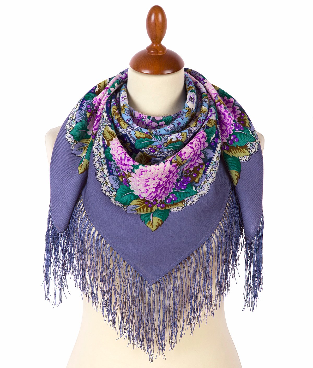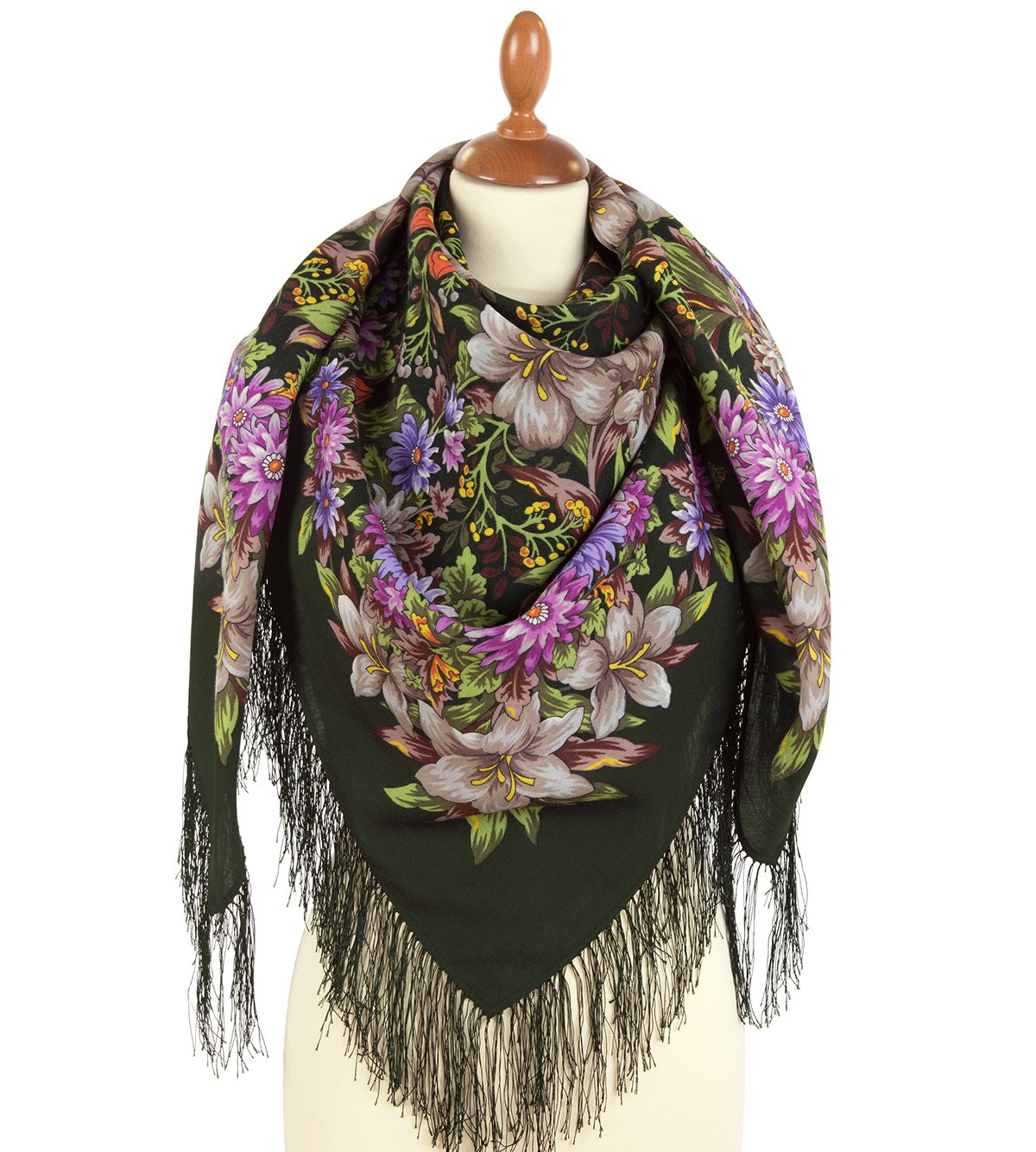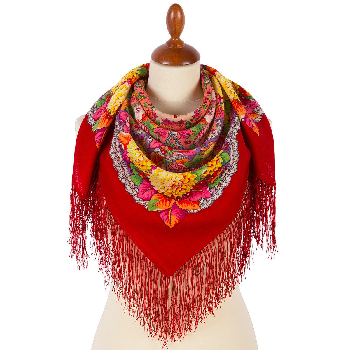 Платок шерстяной с шелковой бахромой, 89x89 см