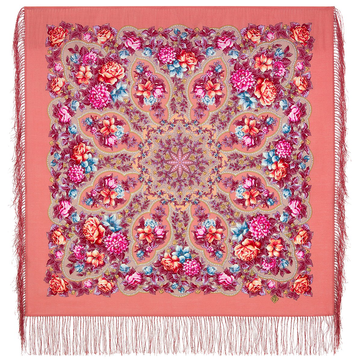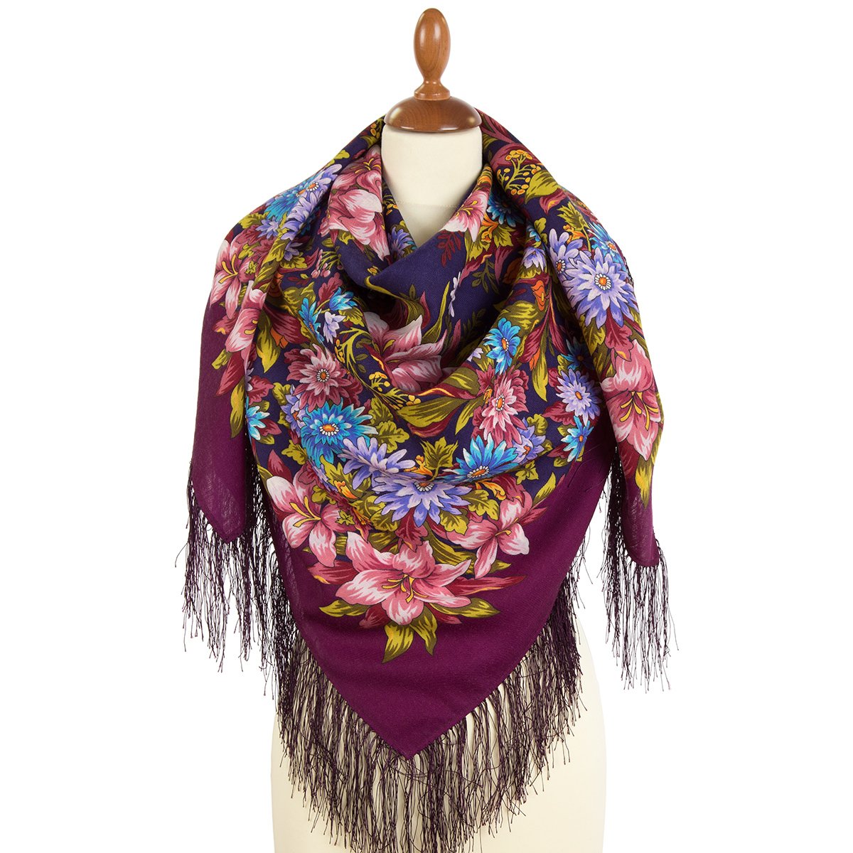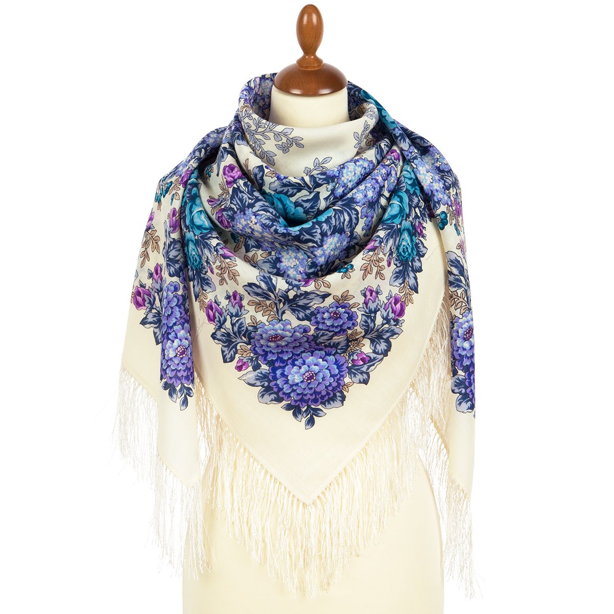 Платок шерстяной с шелковой бахромой, 125х125 см
