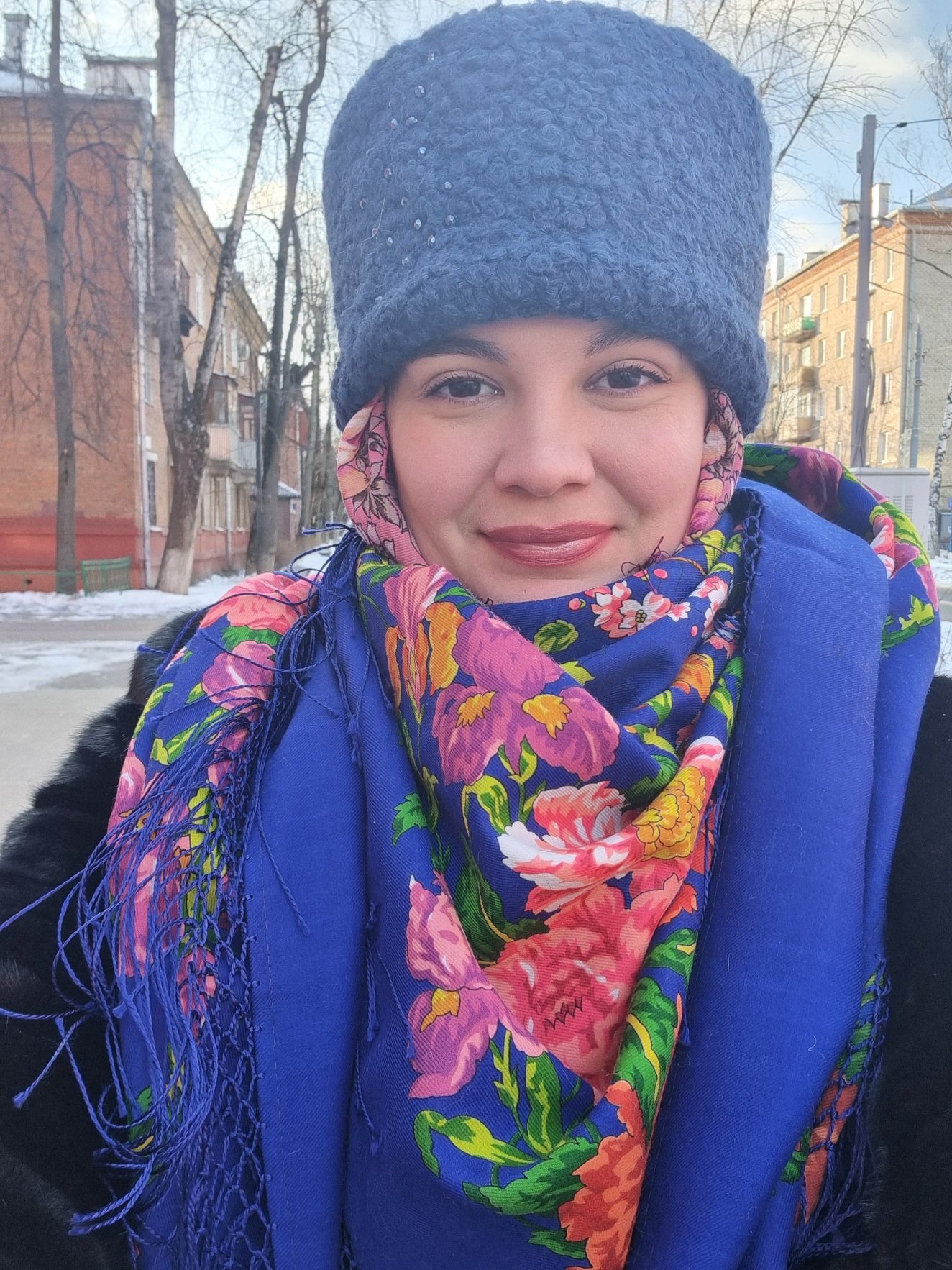 А нам с погодой повезло)) Еще вчера «разделась» до легкого платочка - выгуляла Северяночку, а уже сегодня «утеплилась» в шаль с головой!