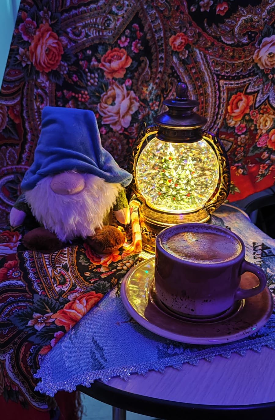 Друзья, я тоже поздравляю всех с новым годом! Несу немножко своего настроения, оно уменя задается волшебной печкой-подсвечником, которую я недавно купила на Ладье. В комплекте к ней много интересного: ухват, заслонка, горшочек, мисочка и... котик) Все это ужасно милое и здорово смотрится даже просто на столе. Добавляю платки и всякой всячины, чтобы получилась история: вот платочек Праздник огня - зимнее небо, еще один платочек, Диковинка, - сугробы, еще один, Мечта хрустальная, - изба. Снаружи - зимняя ночь, а внутри в избе жарко натоплено, на столе хлеб, на коврике котик.