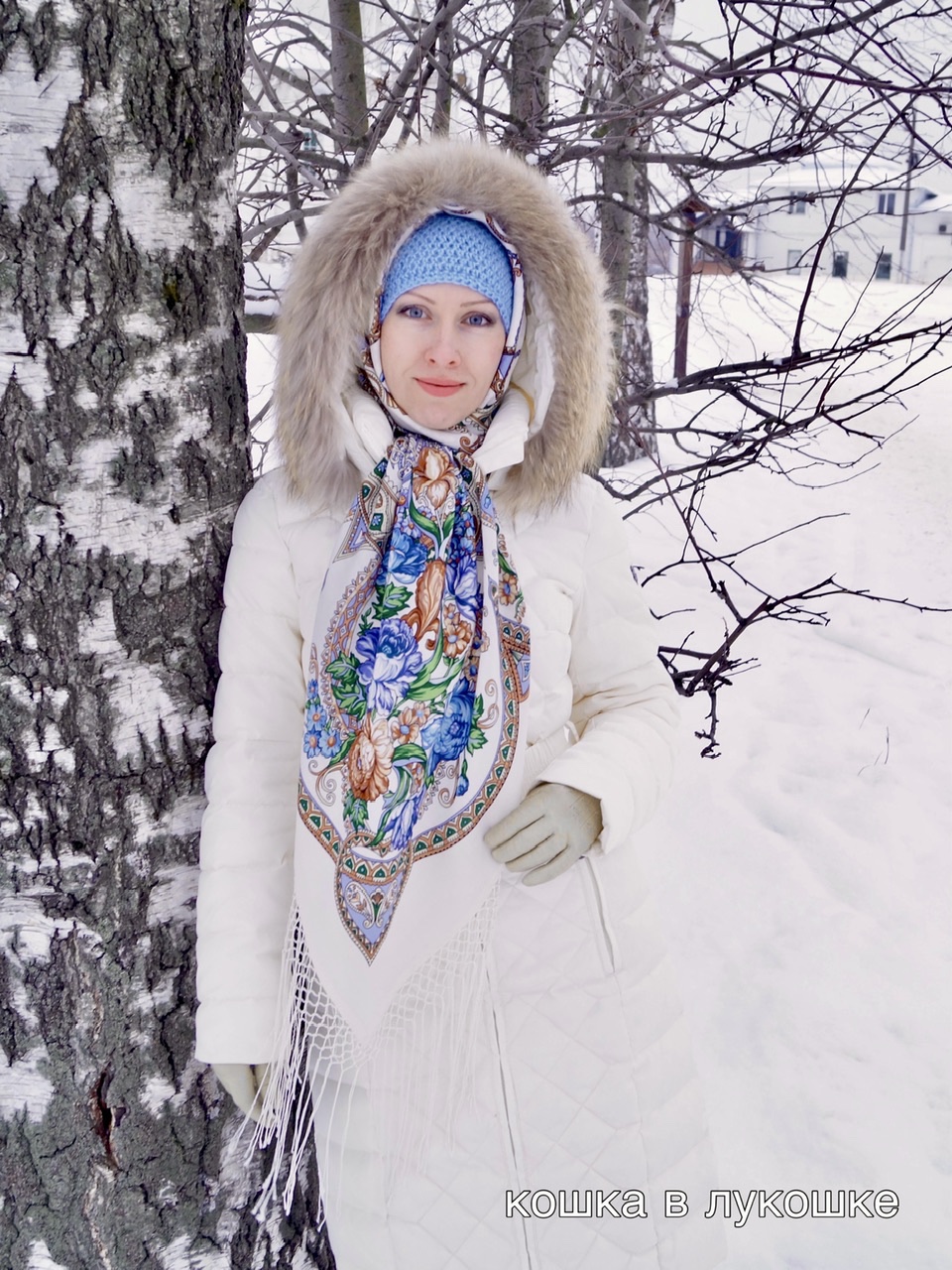 А нам с погодой повезло)) Еще вчера «разделась» до легкого платочка - выгуляла Северяночку, а уже сегодня «утеплилась» в шаль с головой!
