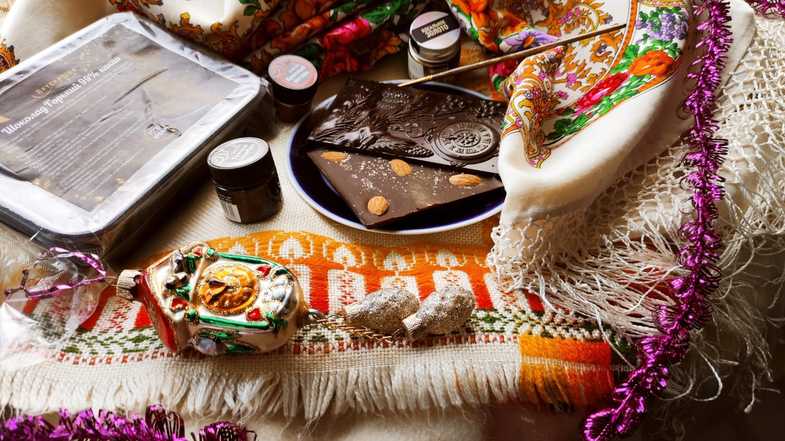 - Из килограммовой развесовки чистого горького (+ванилин) формировала в плиточки с новогодней тематикой, в растопленный добавляя понемножку корицу+гвоздику+мускатный орех+имбирь+кардамон+черный перец + подсластитель эритрит и стевию + совсем мало соли.