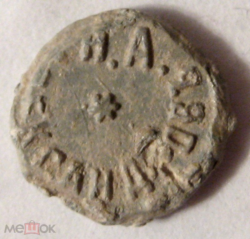 На Мешке Пломба торговая конца XIX в. Н.А. Александровъ. Диаметр 11-12 мм. Надписи: Н.А. АЛЕКСАНДРОВЪ // С.РУСИН.БОРОВ.