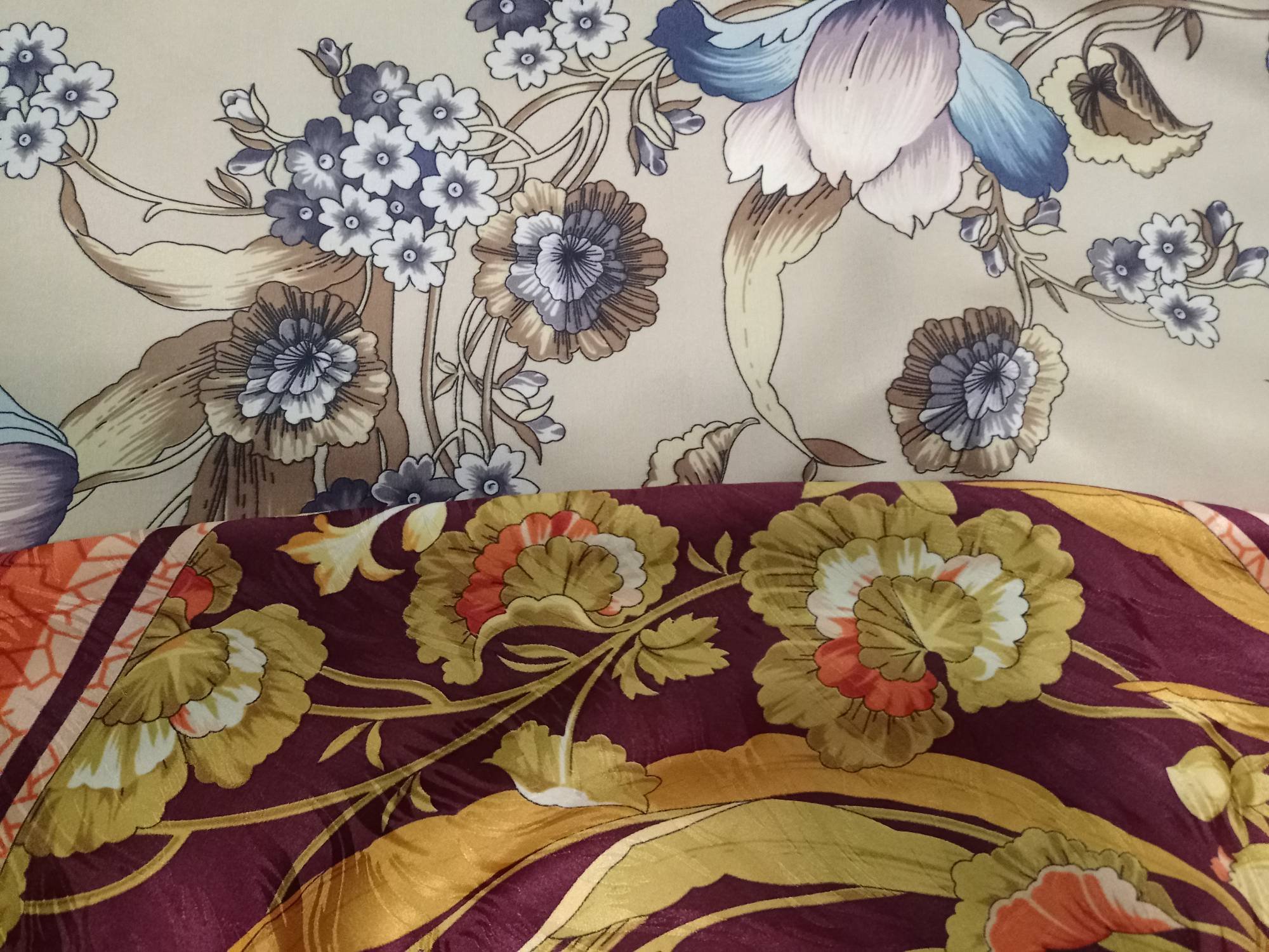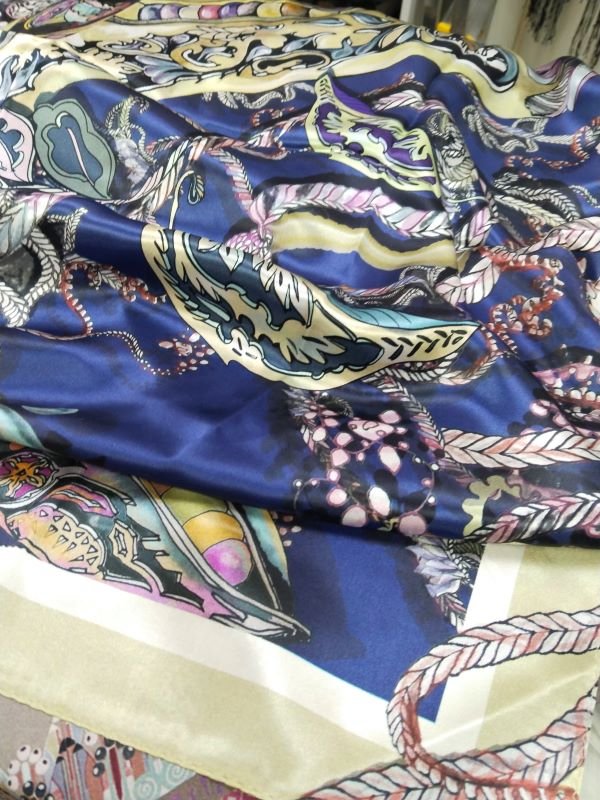 Платок розовый!!! У меня на мониторе на сайте он красный, а в жизни хороший винтажный розовый. Ложится к лицу хорошо и идет - делает меня малость посвежее.