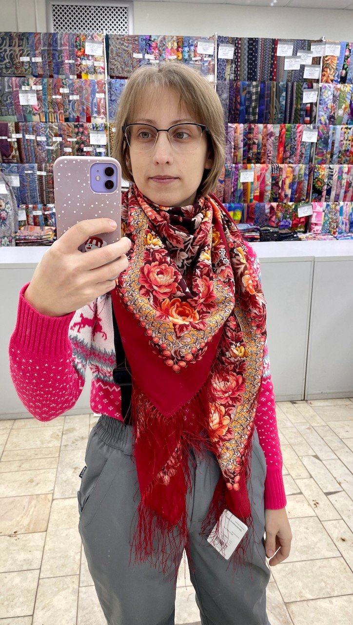 Какая красивая новогодняя примерочная! Всех прекрасных дам поздравляю с Новым Годом! Желаю здоровья и гармонии, чтобы родные и близкие радовали, в доме царили любовь и счастье! Мирного неба! Пусть платочки греют и радуют каждый день и несут красоту в мир. Исполнения платочных желаний! С Новым Годом!