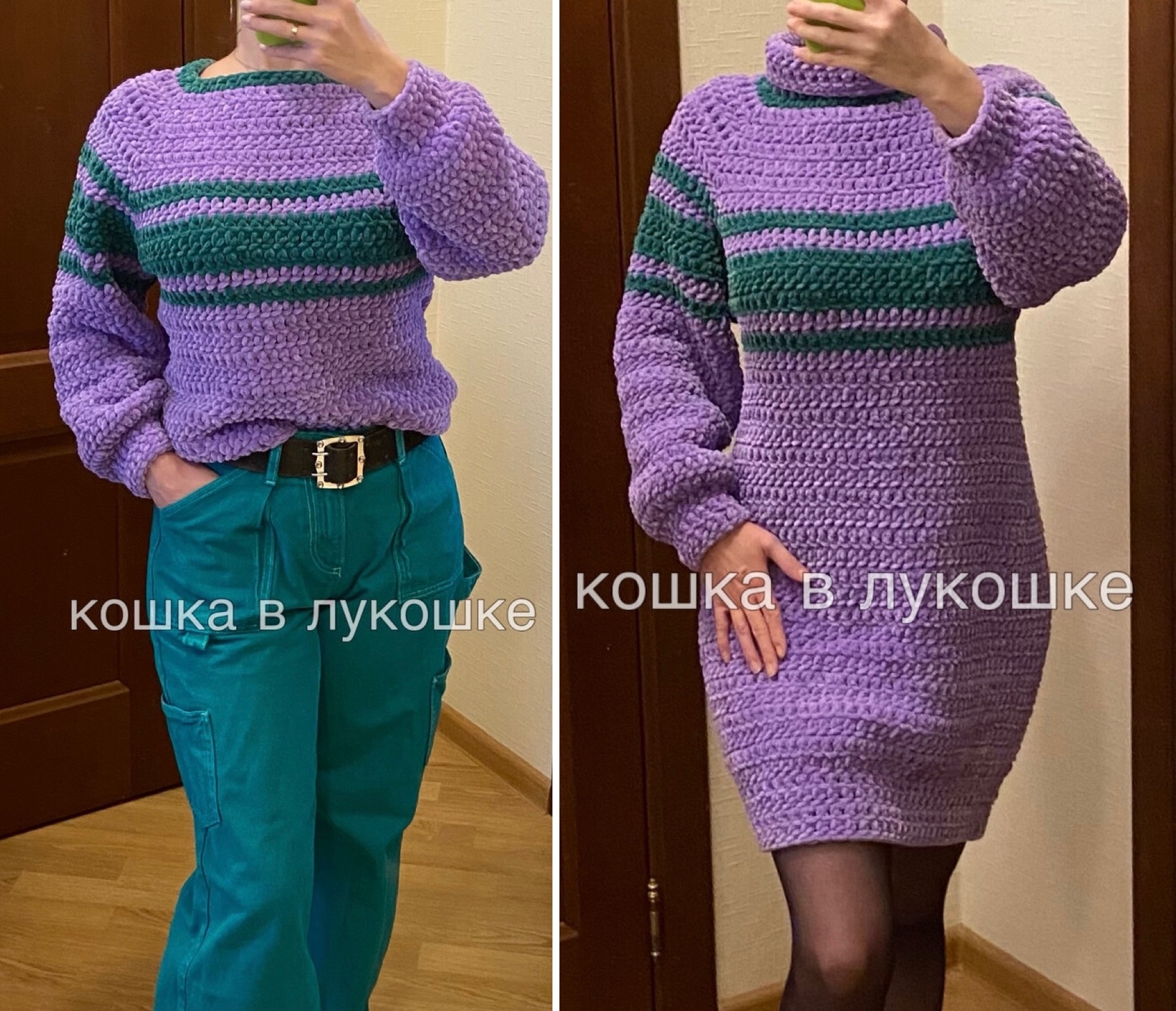 А я недавно вязала джемперок, походила немного и решила сделать из него домашнее платьице/туничку.