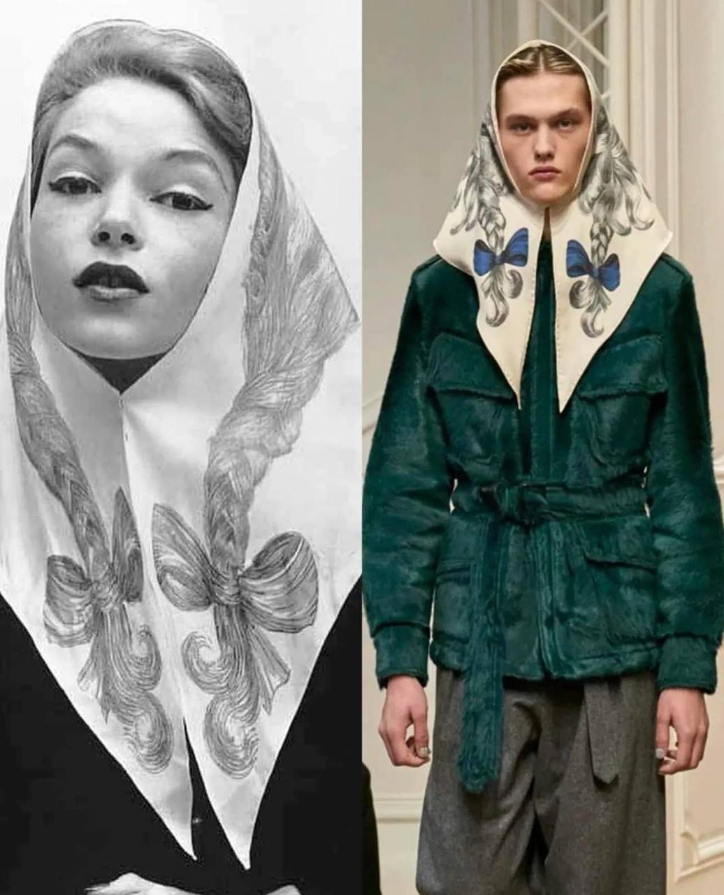 80 лет назад - милая девушка в милом платочке. Сегодня - молодой мужчина в женской одежде, как будто так и надо. А разница в выражении лиц!