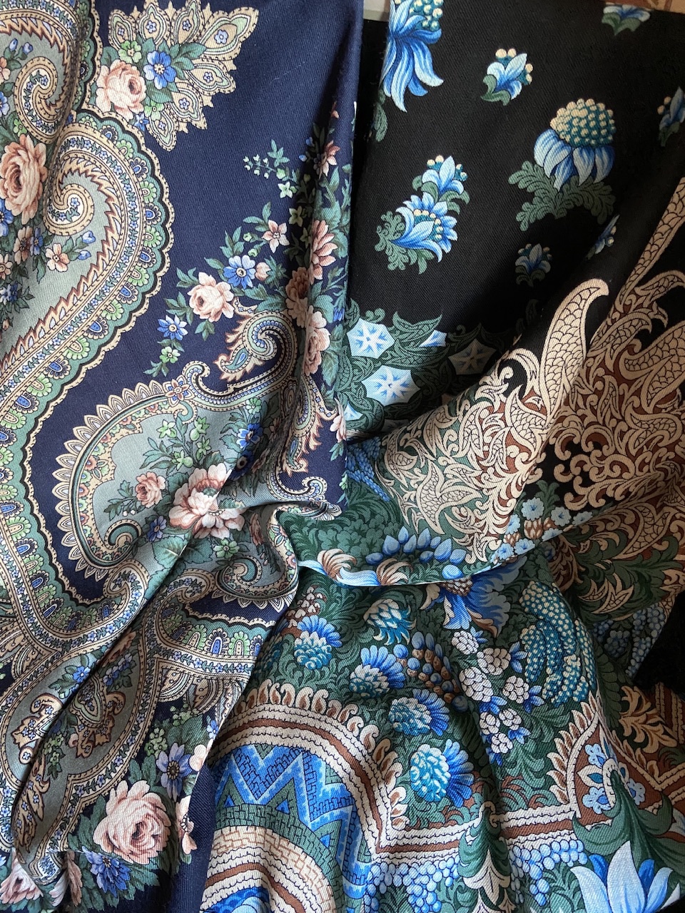 Майя 27 и У камина 15. Для меня шали- компаньоны. Издалека больше общего, чем вблизи. Фото дома, не идеальная цветопередача, конечно. Схожи по настроению очень.