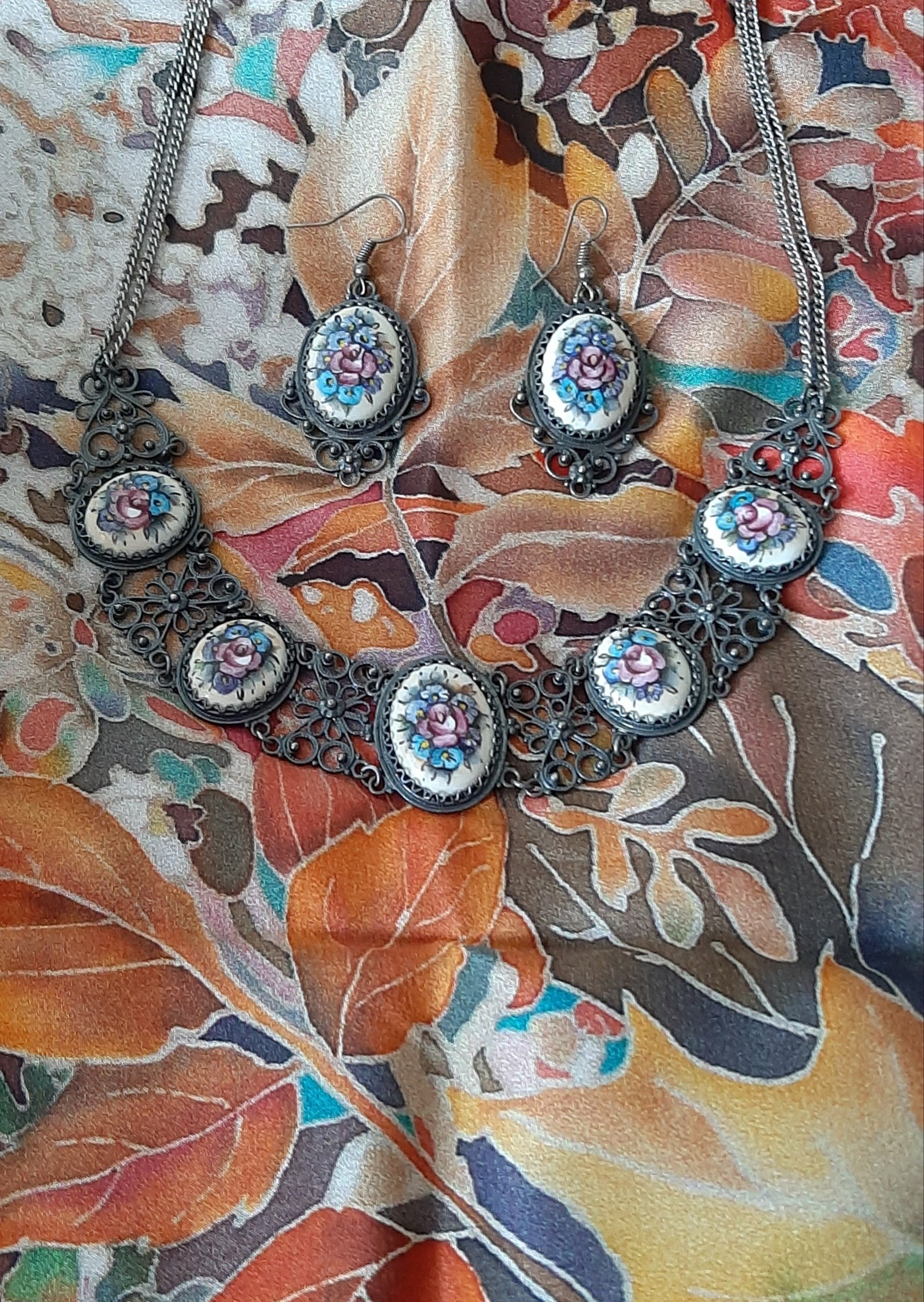Добавляю. Ростовская финифть 1970-80-х гг. и шаль "Вдохновение"И еще два почти одинаковых кулона. Игра "Найди отличия"