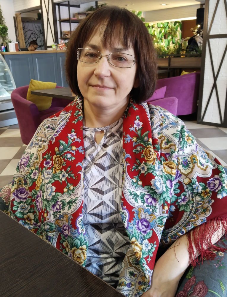 И с этого предисловия продолжу и покажу Таню в красной Княжне. Уткина рисовала. Красивый платок, с колоритами, ну на мой взгляд намудрили, но выбрать можно и Алла выбрала красный! И на Тане С серым хорошо сочетается.