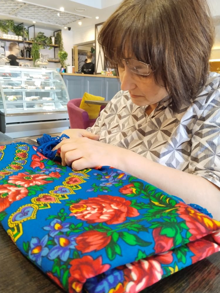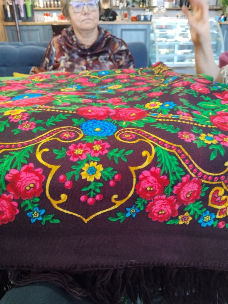 И ещё про Зрелый возраст. Шаль завораживает. Видела и с красной каймой и с черной. С красной понравилось больше. Но не идёт от слова совсем. Как бы хотелось, чтоб вместо красного был насыщенный зелёный, изумрудный. Или синий. Не очень темный, но и не светлый. Хоть помечтать