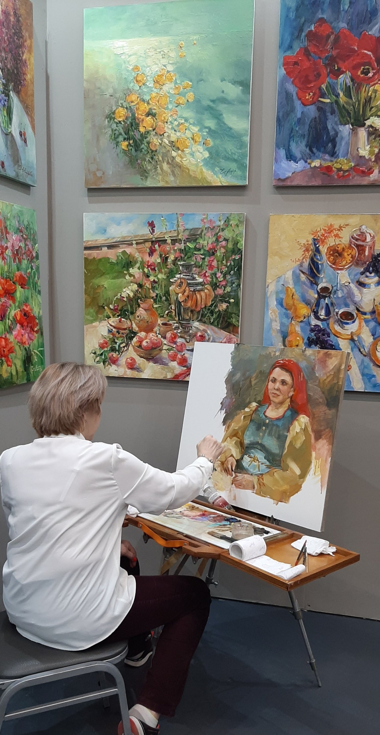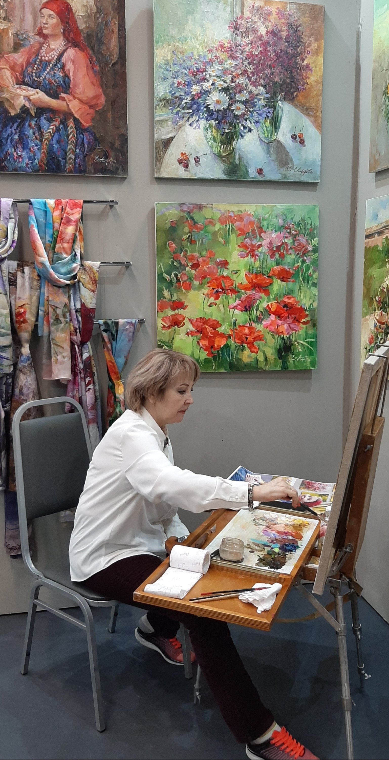 Вчера посетила "Арт-мир". Интересно наблюдать за работой художников. Не обошлось и без платочной темы.