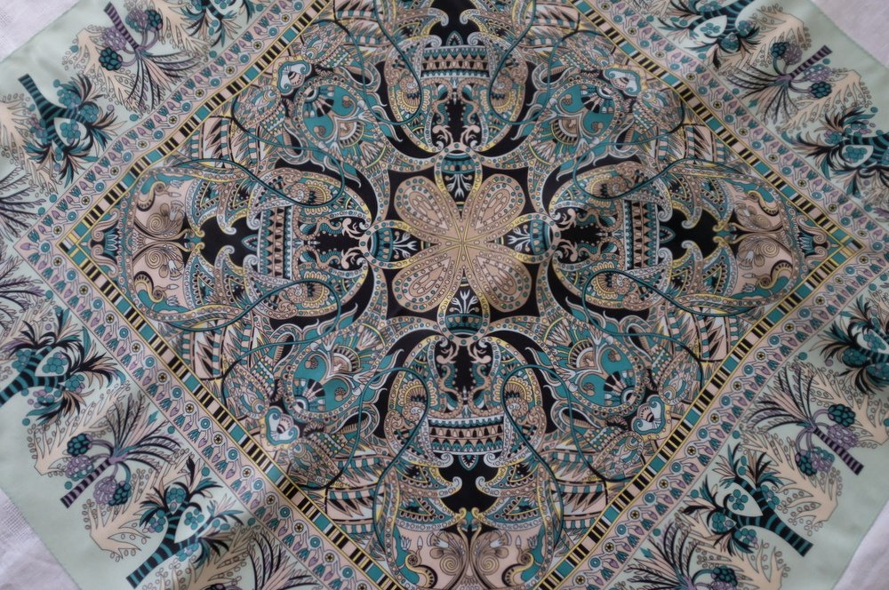 Чудесный платок! Рада, что перевыпустили. А то у меня не было ничего шелкового орнаментального в размере 89х89.