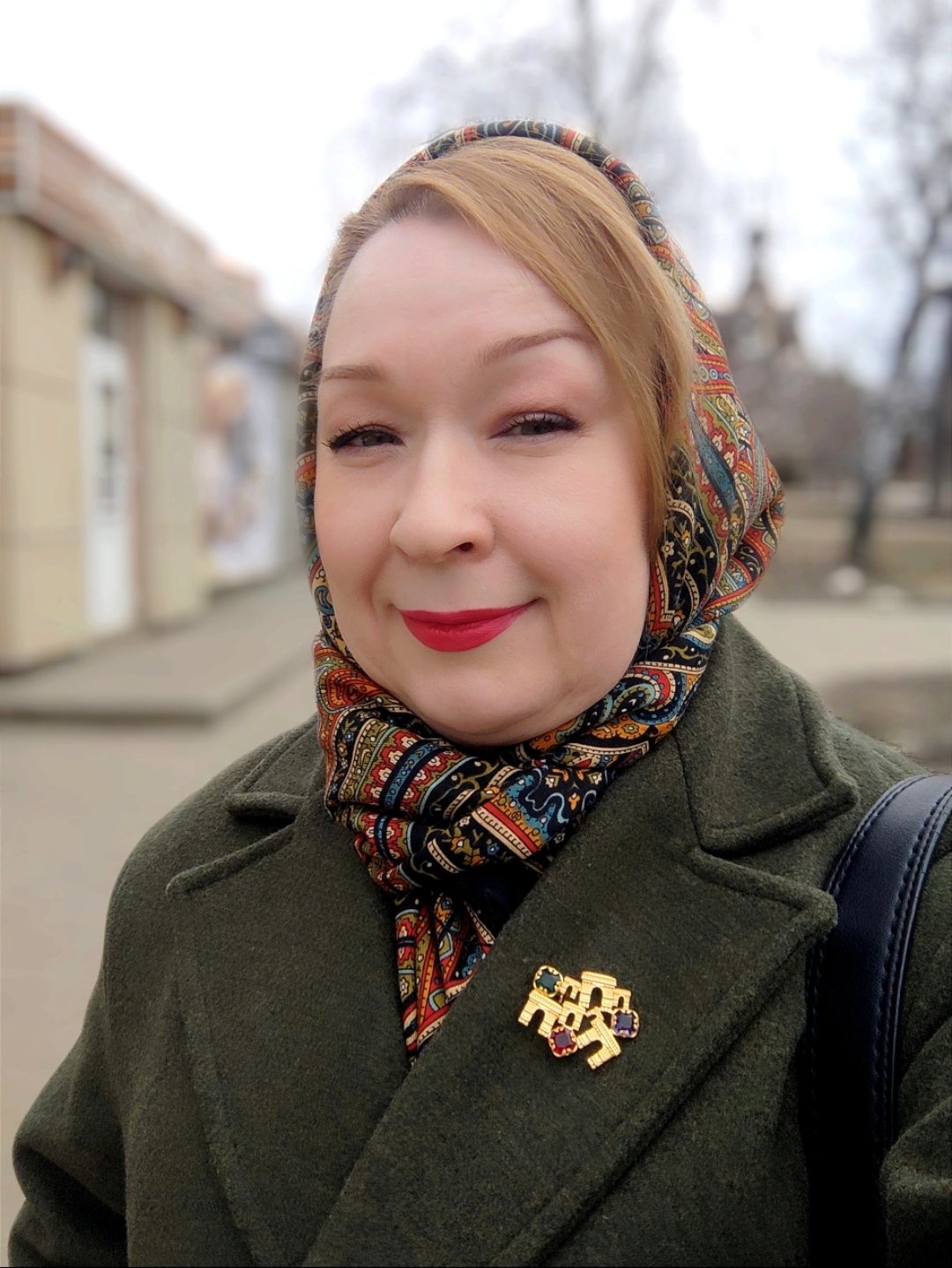 Марина, Время песен очень интеллигентный платочек в этом колорите. Вам замечательно!