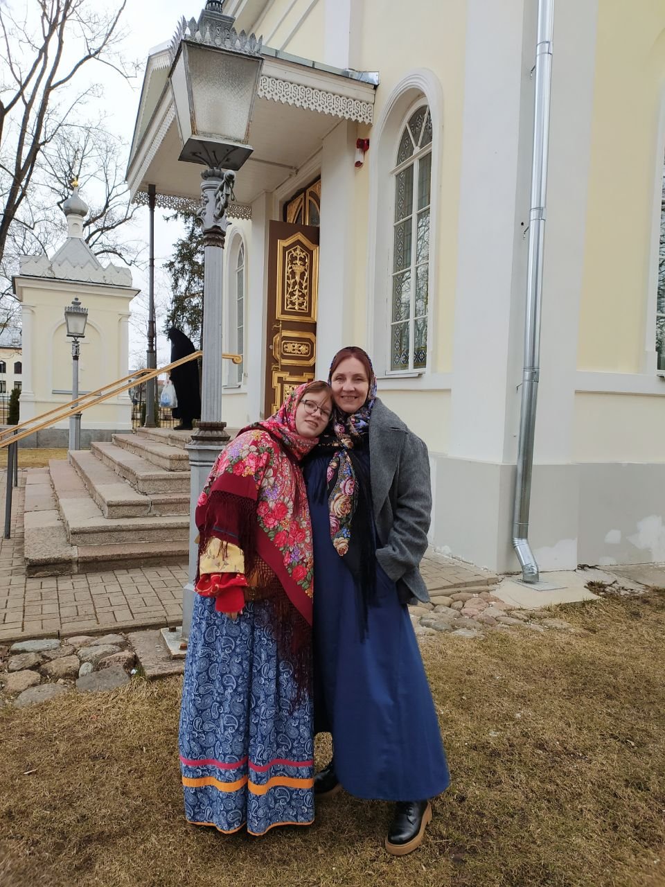 Весна, жаворонки звенят, журавли танцуют, платки носятся, у меня - великопостные, у дочки - любимые.