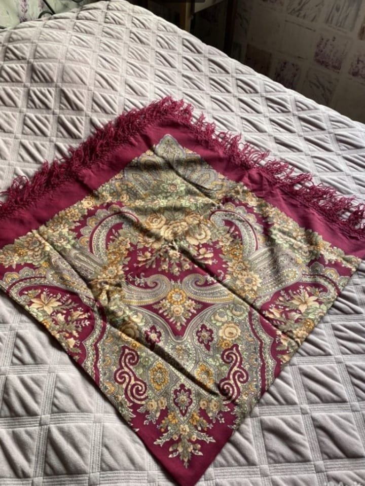Здравствуйте! Помогите, пожалуйста, опознать платок. 140см со слов продавца. В гирляндах искала, но не нашла.