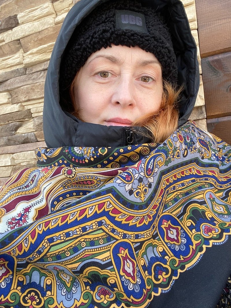Марина, как хорошо! Меланхоличное северное небо, пейзажи нашего залива, ты, платок- все так пронзительно и дорого душе!