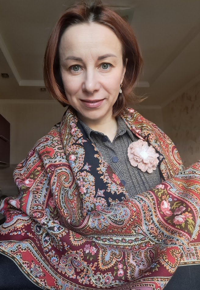 С Ностальгией у меня тоже не вышло любви с первого взгляда! Пока дала ей шанс. Вот точно как у Оли, сам платок нравится, а на себе что-то не то, хотя и мрачнее ее ношу с удовольствием.