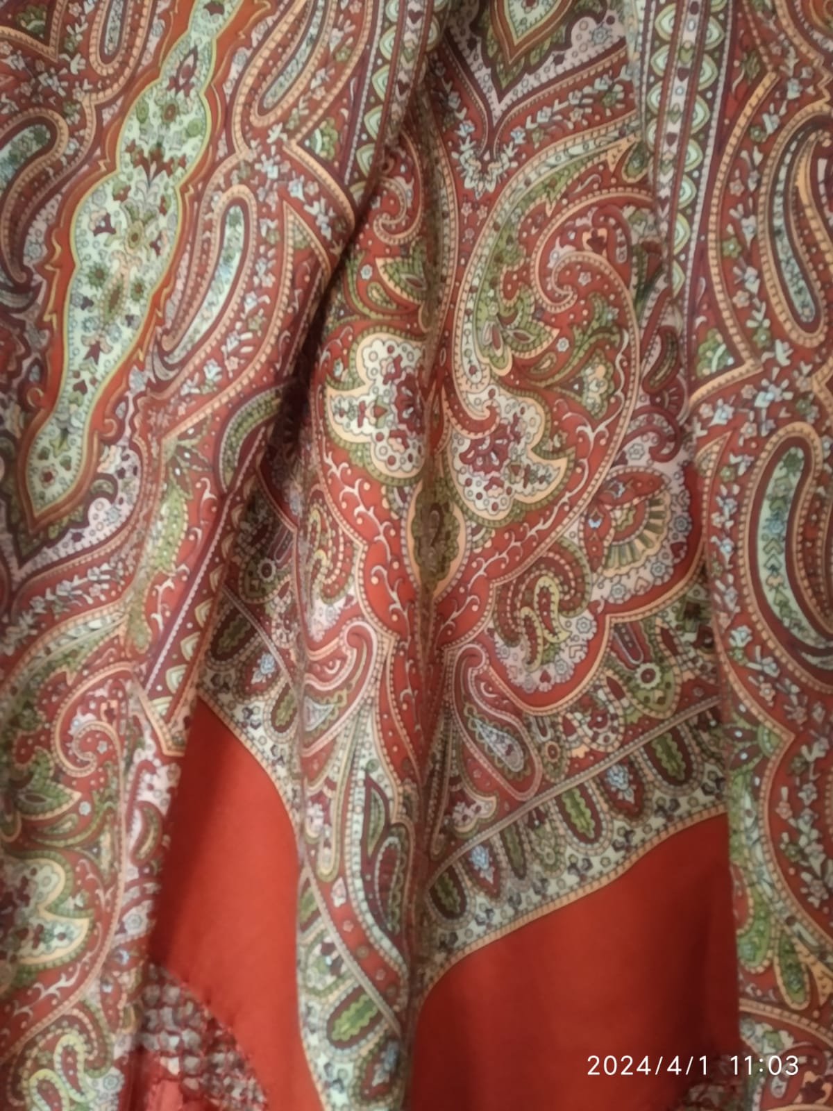 Шаль моей сестры, точно на экспериментальной ткани, но вот этикетку она не сохранила и колорит не помнит.