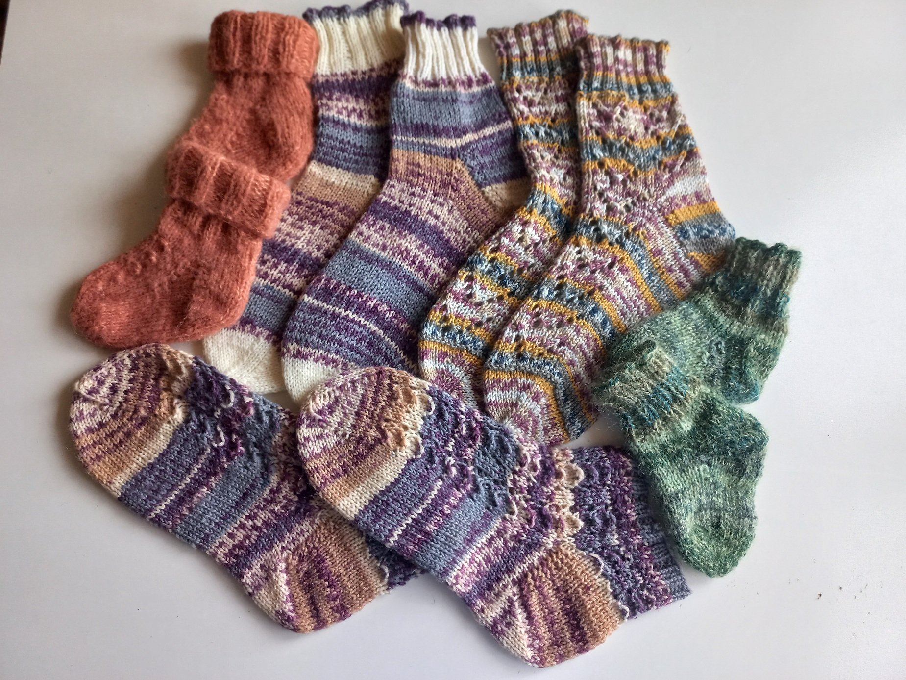 Ох уж, эти вязальщицы! Вы только посмотрите на это! Как из рога изобилия на меня высыпалась эта гора носочков! И так оно вот всегда! Могу еще и стареньких пофотать, их есть у меня "немножко")) Каждый раз удивляет и восхищает и пряжа, и ажурность узоров. Моя пара в этот раз ну хоть под стекло музейное, тонкая работа, нежные-нежные, говорит, с добавлением шелка! А вы всё: куда пропала Шахтуш, куда пропала Шахтуш? Да вяжет она с утра до ночи! Обвязывает полмира! Родных, друзей, друзей друзей - всех! Трудяга! Обожаю, люблю тебя, Светик!