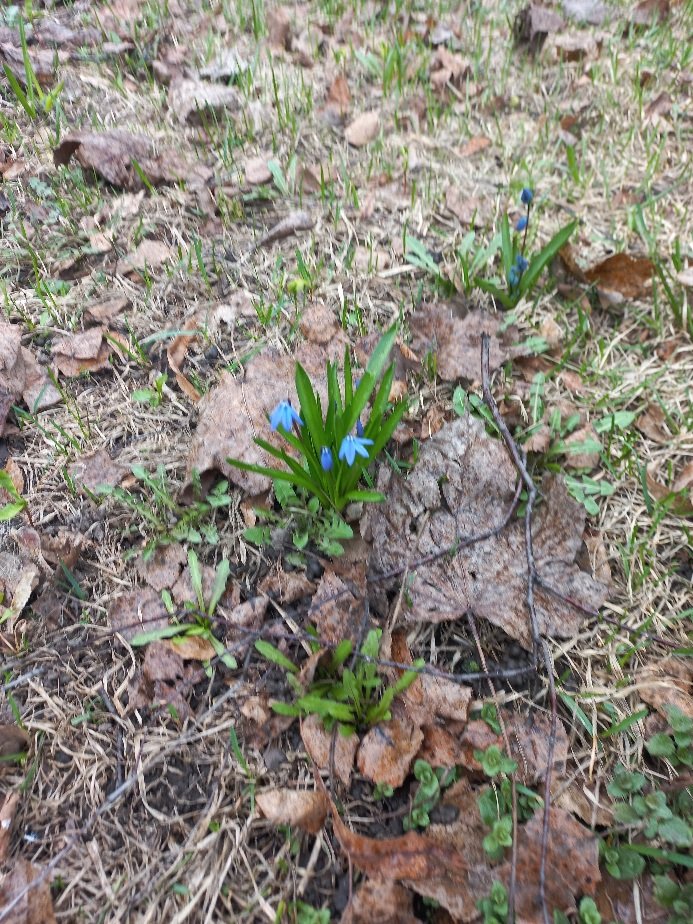А цветочки эти синие пролески называются, прямо во дворе откуда то взялись
