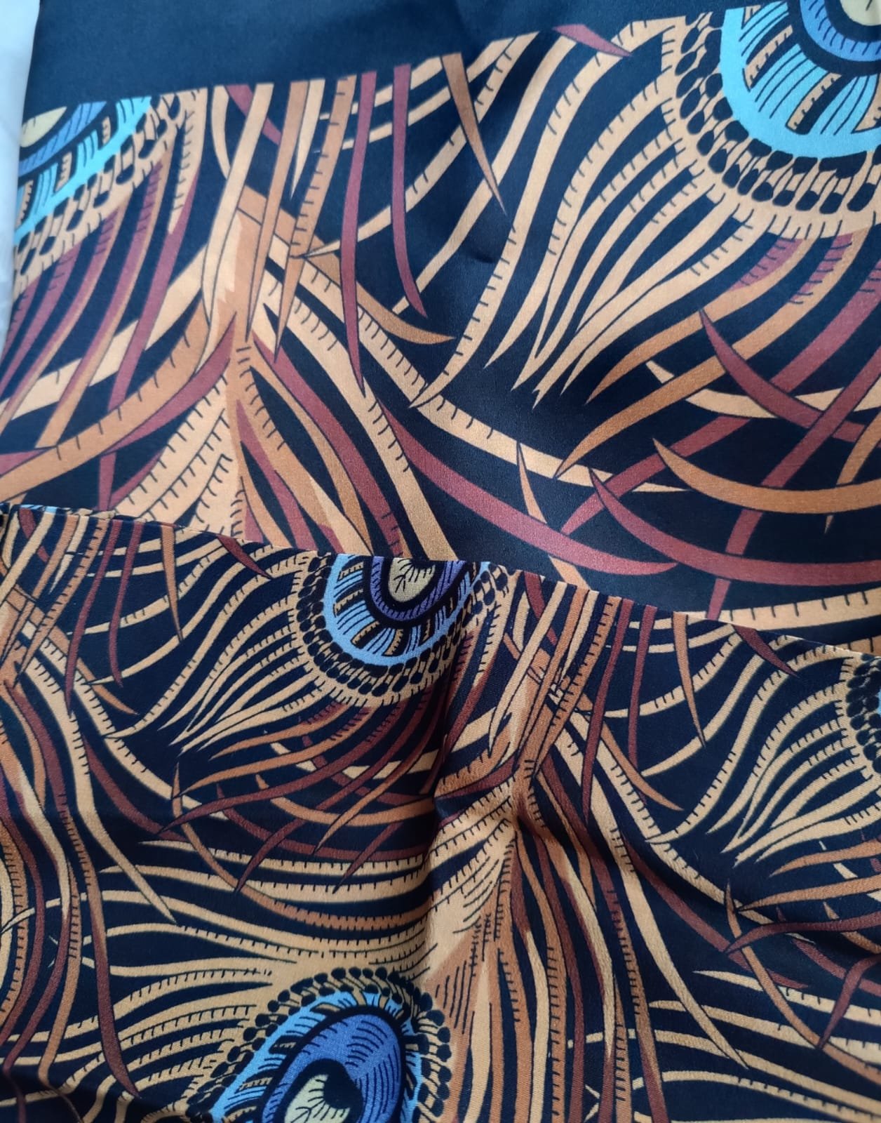 Покажу здесь коллекционный платочек Тёплая осень 16 Натальи Фроловой коллекции Жостово. Очень понравился на фото Кати Сорабис, но от него отличается на самом деле, гораздо мрачнее. На моем фото более похож, но тоже в реальности чуть более коричневый. Рисунок на углах высоко, в намотке виден плохо.