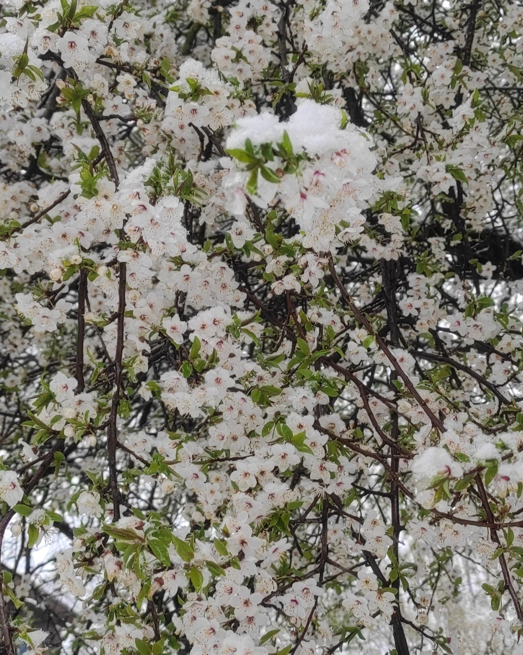 Алыча и в цвету, и в снегу