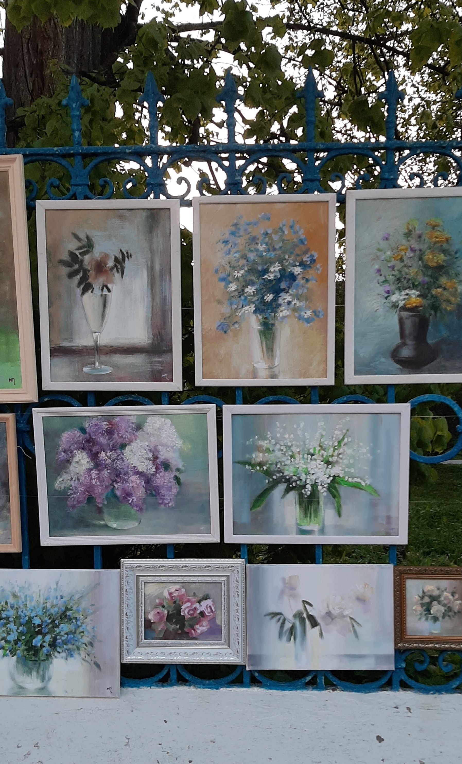 На картинах уличных художников весенние цветы пришли на смену зимним пейзажам