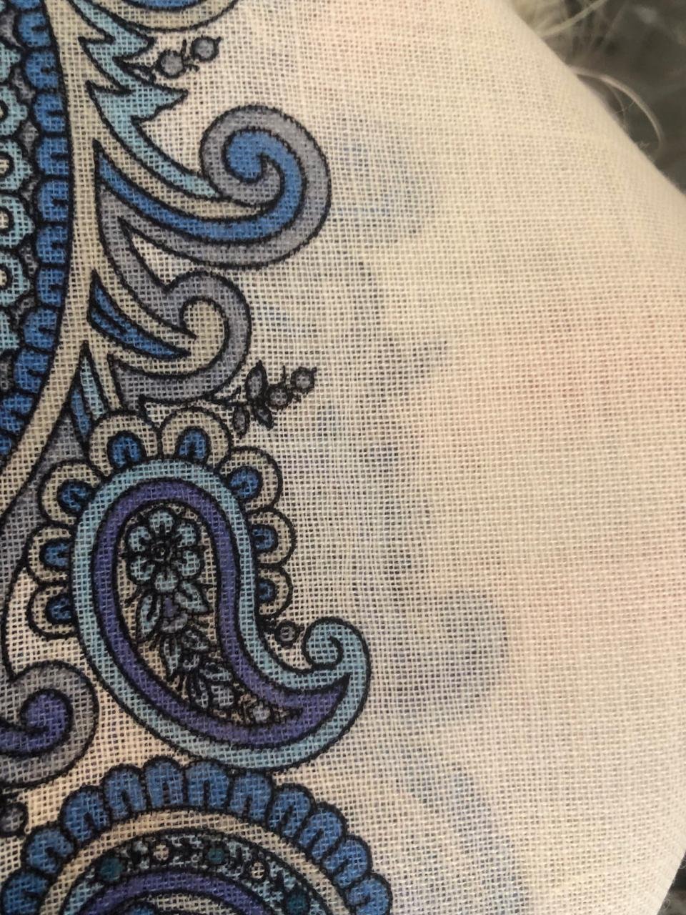 Сегодня получила вообще "двуниточный" платок, не то что 146-й, и тоже марля! Чтобы всё полностью было понятно, сфотографировала это безобразие, где рисунок виден аж сквозь два слоя ткани! А вот где там две нитки, увидеть невозможно >< .