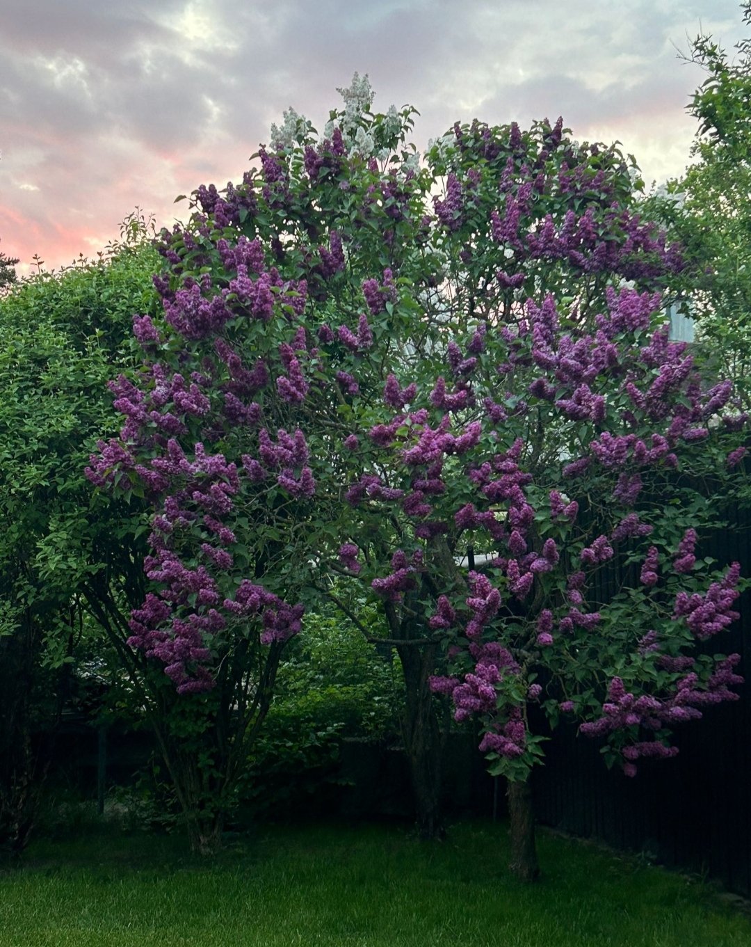 И я добавлю сирени ...из нашего окна вид вечером. В этом году цветов больше, чем листьев