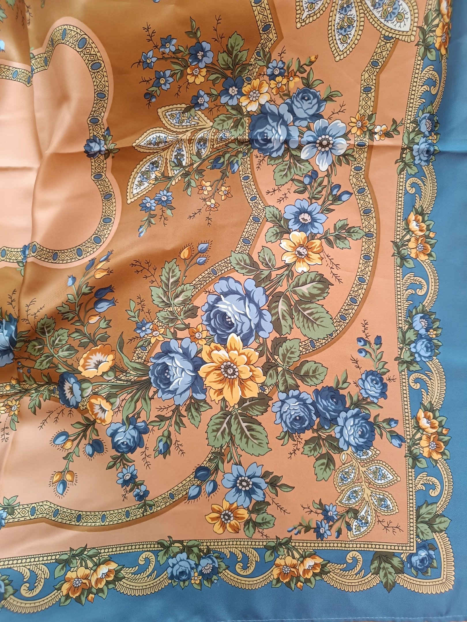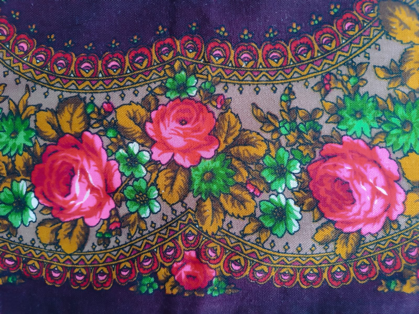 Удача мне улыбнулась и Пробуждение в неведомом 1 колорите теперь у меня в коллекции. Ткань прежняя, скорее всего саржа, поже сравню со стареньким Санкт-Петербургом Сухаревской. Цвет разительно отличается от картинки в галерее, намного ярче и кайма стального оттенка. Извиняюсь за помятость, только что с почты. Целиком позже сделаю фото для архива, пока фрагменты.