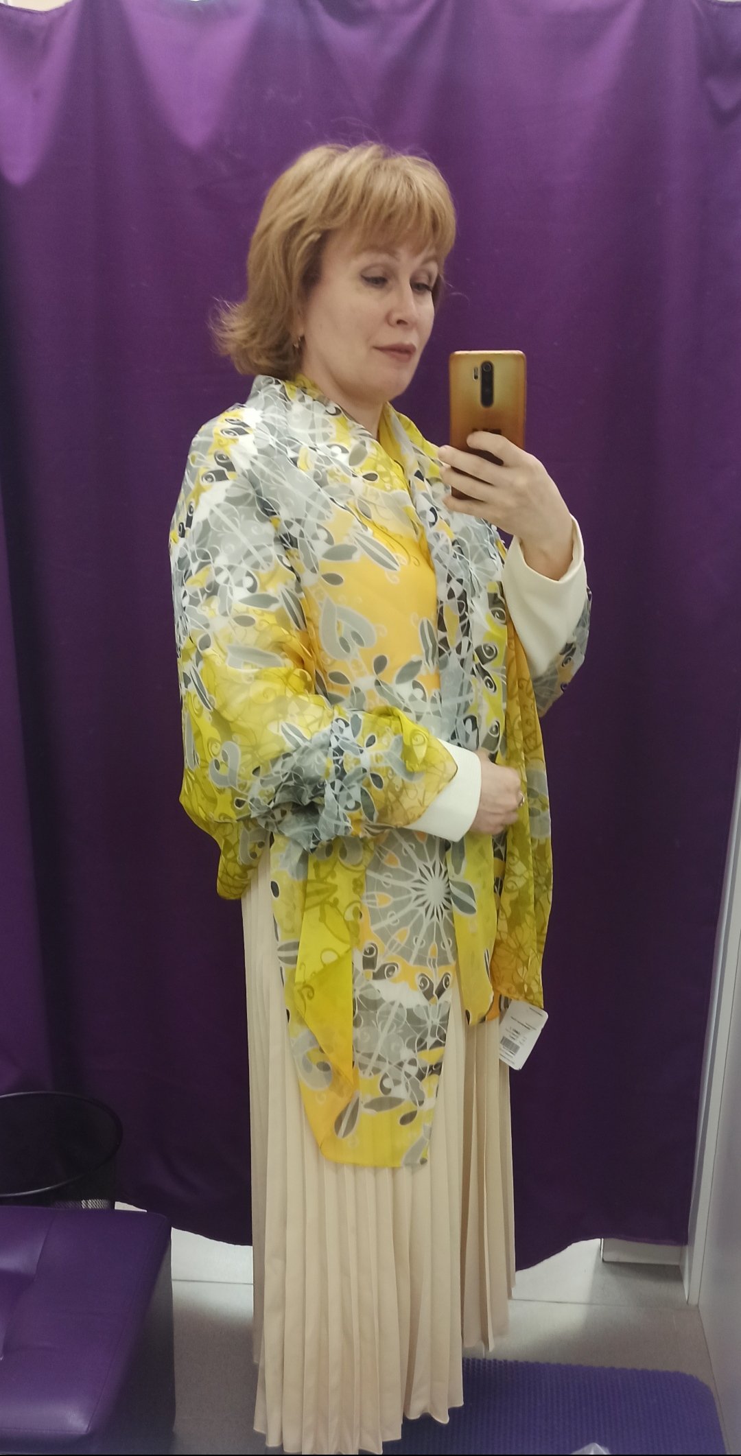 Пару дней любуюсь вашими фотографиями. И ...ищу ассоциации. Вот не знаю почему так , если фото " цепляет". И вспомнила 😀 Сочетание всего на фото напоминает мне домашний пирог с ягодами. Сочный, вкусный и уютный. Именно такой этот платок. Уютный. Нежный , плюс ваш образ ему соответствует.