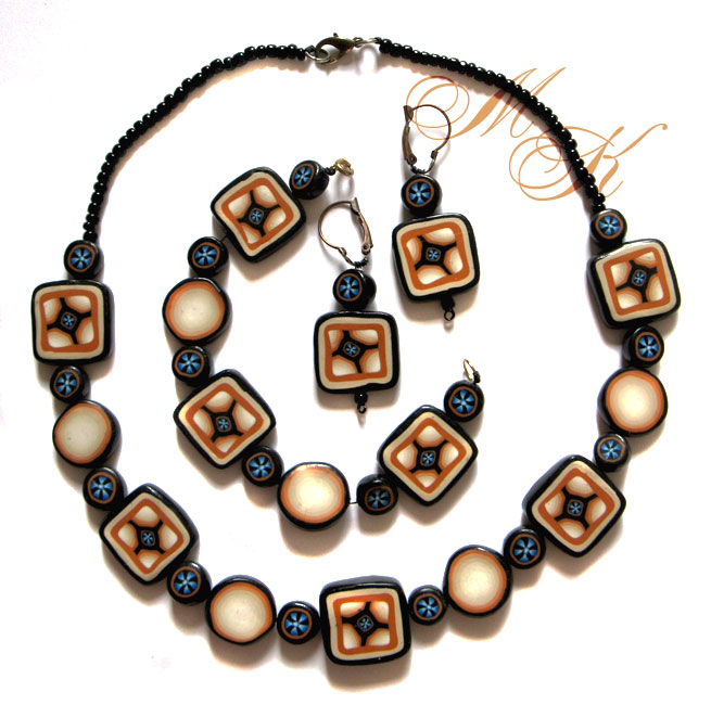 Хотя я вот поискала в Инете через "Картинки" такого вида ожерелья, и мало что дельного нашла - больше на уровне поделок (типа: "...дело было вечером, делать было нечего..."). Да и сам материал не из дешёвых, а учитывая необходимое количество трудо-часов, многоступенчатость технологии изготовления, запекания в особой печке и особенности наложения узоров (не раскраска, а "впаивание", если я правильно поняла объяснения Ксюши), то надо полагать, что "дурницы" в ценах на достойные изделия ожидать особенно не приходится.