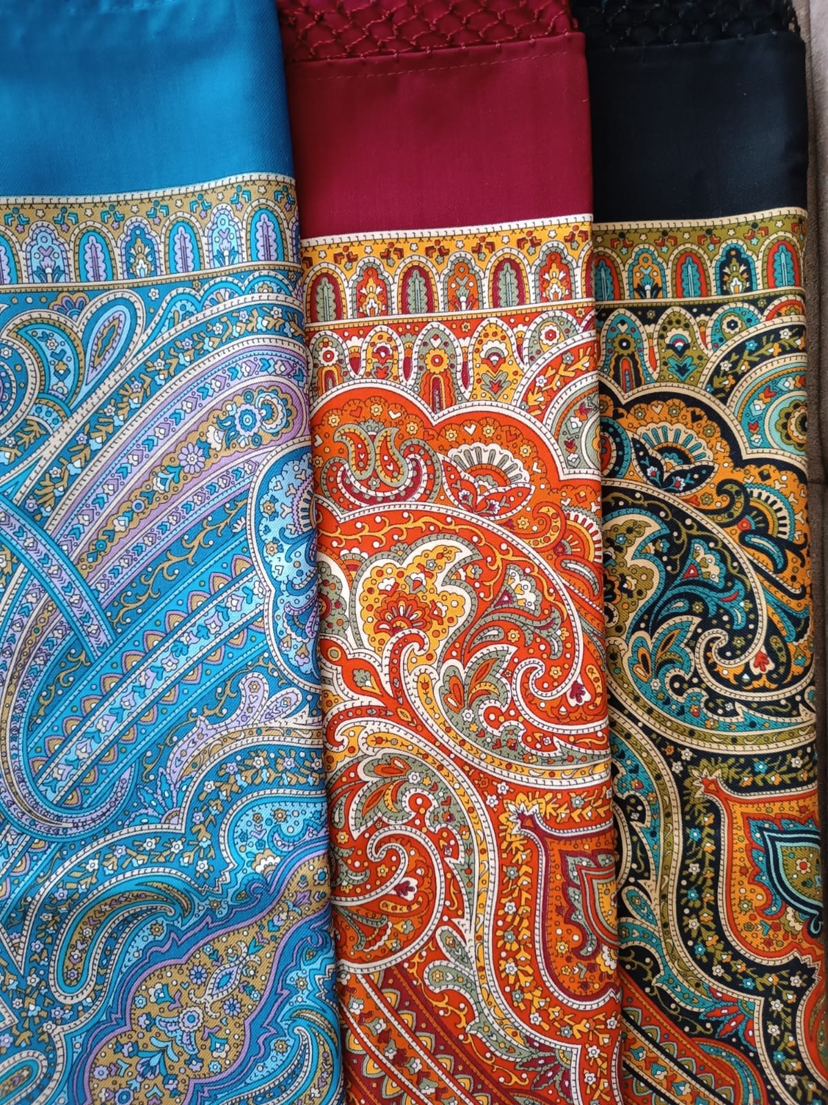 p/s Всё ж Скарабей слегонца "вино", более зрелый. Наверное, на восприятие влияет ещё и ткань - атлас всё ж. Ну и рисунок, Цветочное настроение более легкомысленное: цветочки-веточки-былинки.
