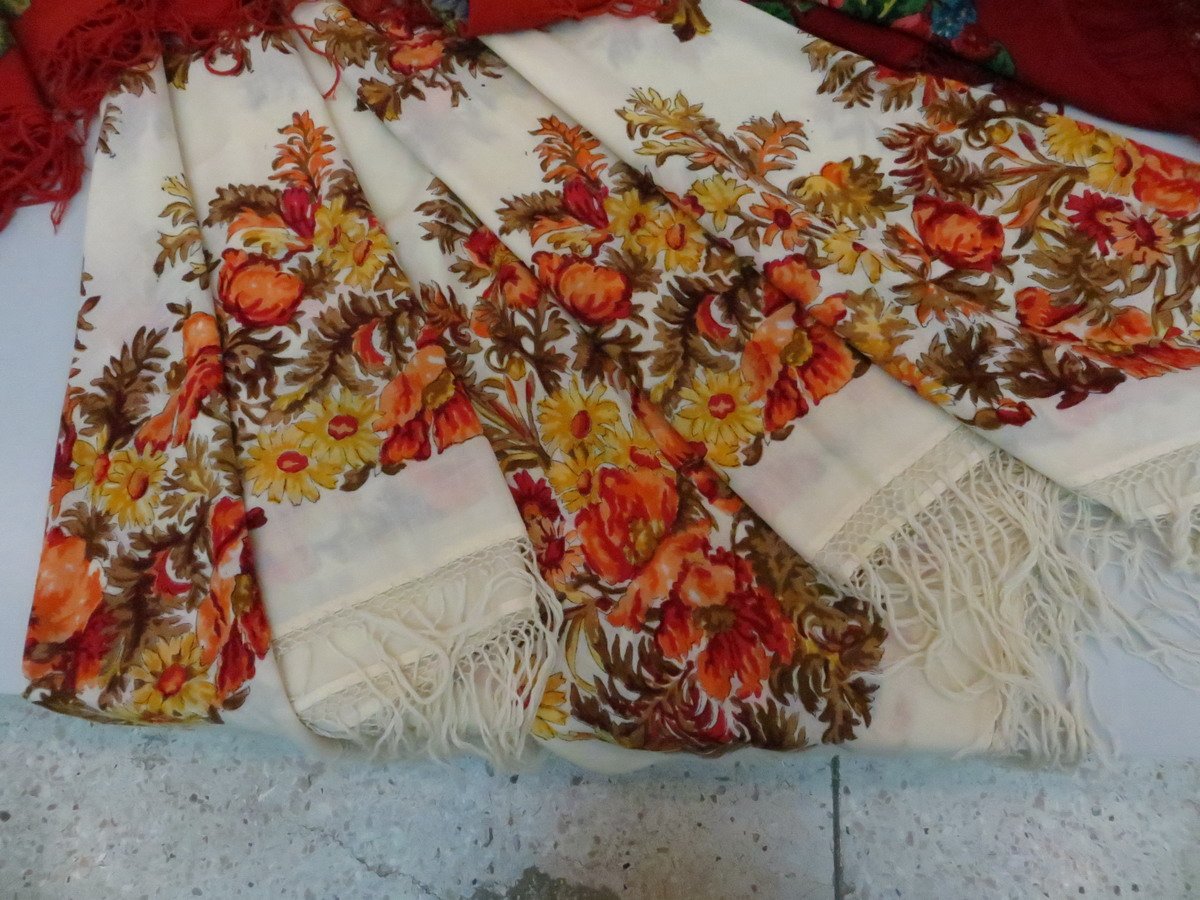Красная шаль, к сожалению, лежала в витрине и высоко, поэтому снимок вышел зюмо некузявый.