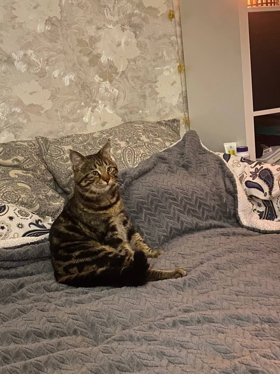Теперь есть дом (*-( и диван, и взгляд уже уверенный, надо сказать, что котик, вообще, очень спокойный и не наглый.