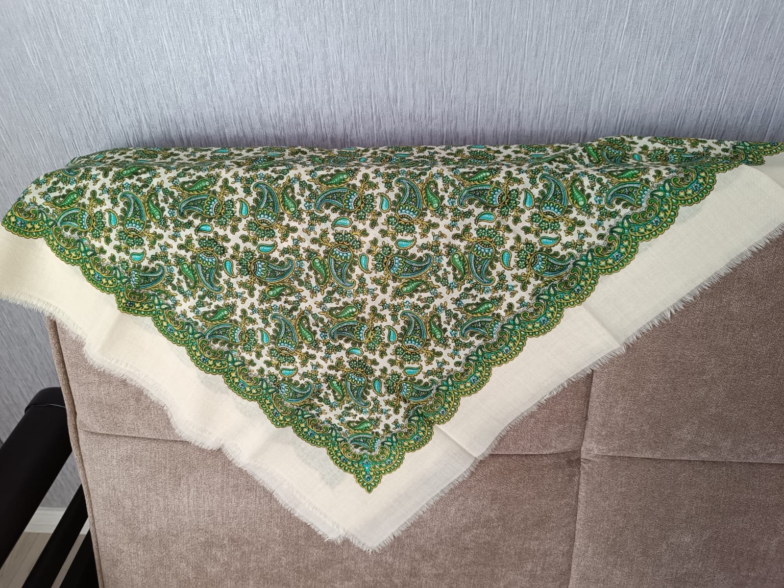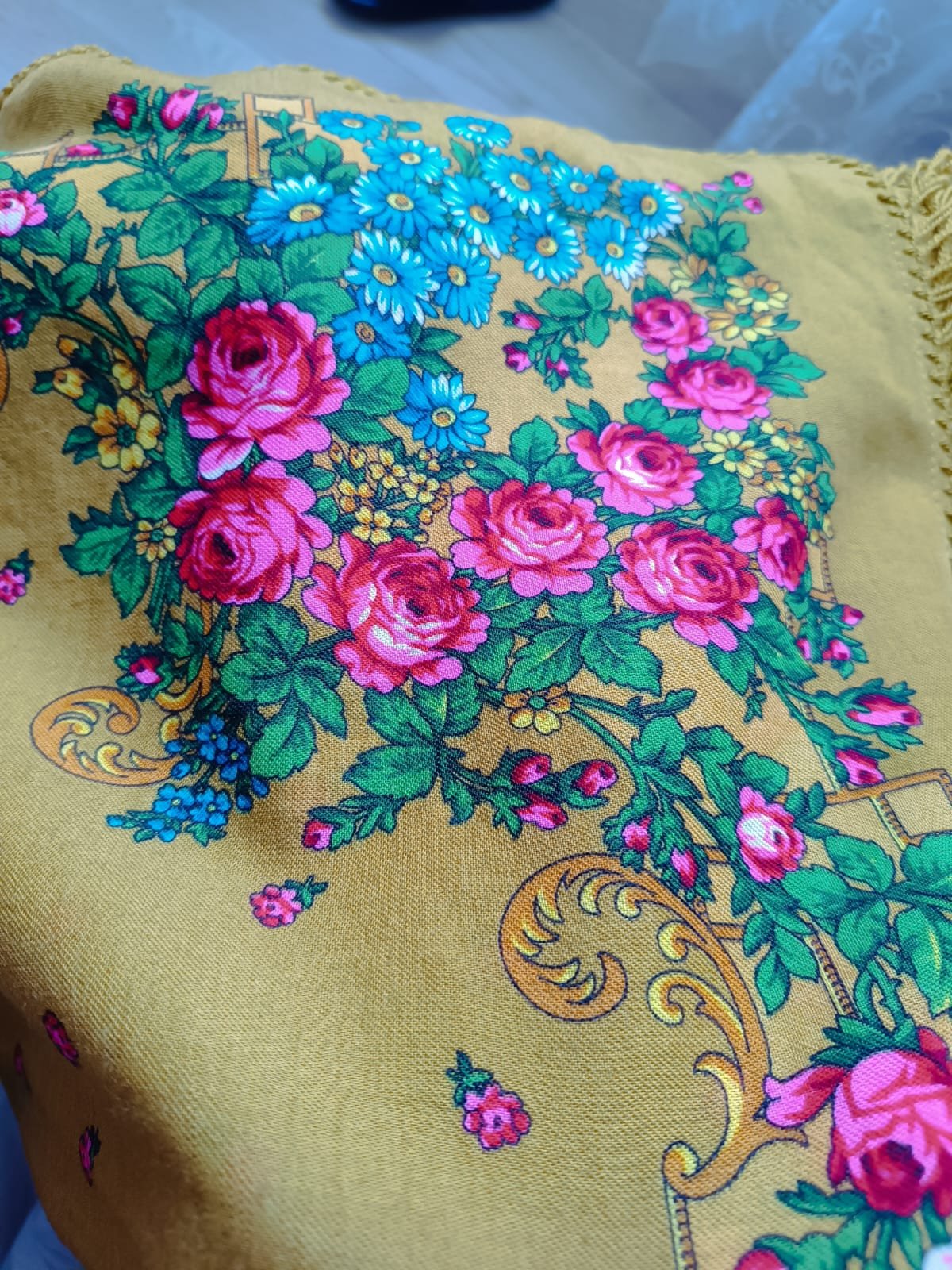 Спасибо за сказанное-приятное! Бахрома не шерстяная, но и не современная( шёлковая). Наверное, это и есть вискоза. Не могла устоять(красивая и редкая!)хоть и есть следы времени: в двух местах аккуратная штопка. Бывшая хозяйка - честнешая и милейшая девушка, испугалась и чуть было не передумала продавать,когда заметила их, ведь шаль просто лежала, не носилась.