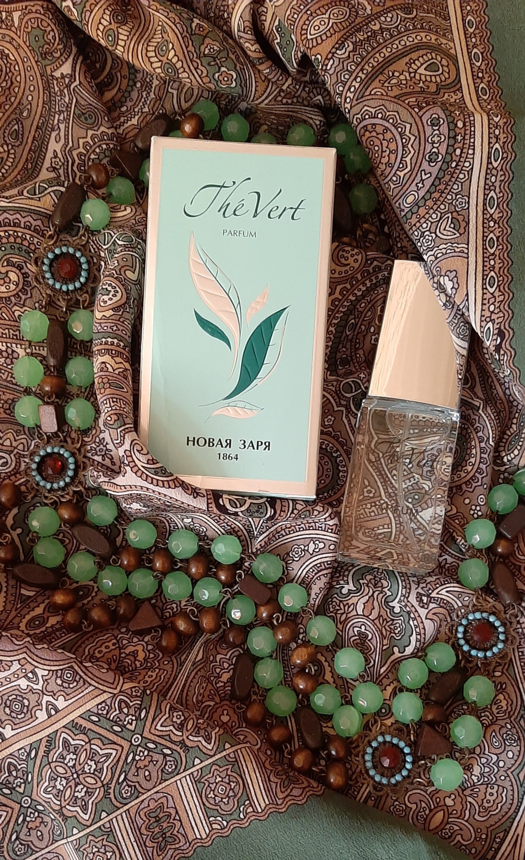 "Зеленый чай" - еще один парфюм от "Новой Зари". Грейпфрут; мандарин; зеленый чай; листья розы; дубовый мох; янтарь; мускус. Аромат свежести с оттенком легкой горчинки и крепдешиновый "Щелкунчик"-10 (художник Сотскова Г.)
