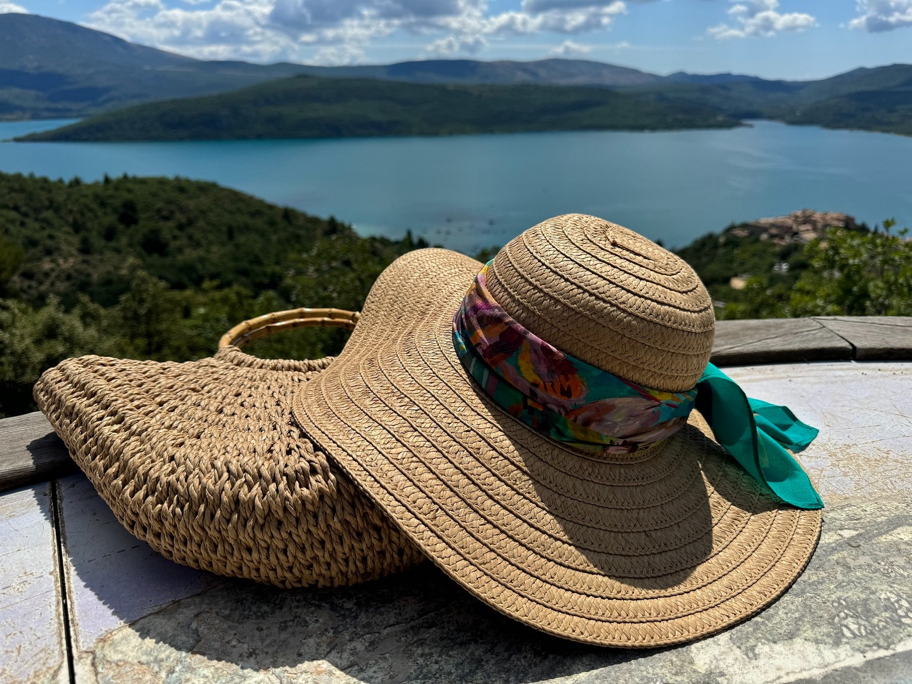 Прошлой весной попробовала украсить соломенную шляпу крепдешиновым Нюансом 9 Л.Иконниковой (65х65 см)