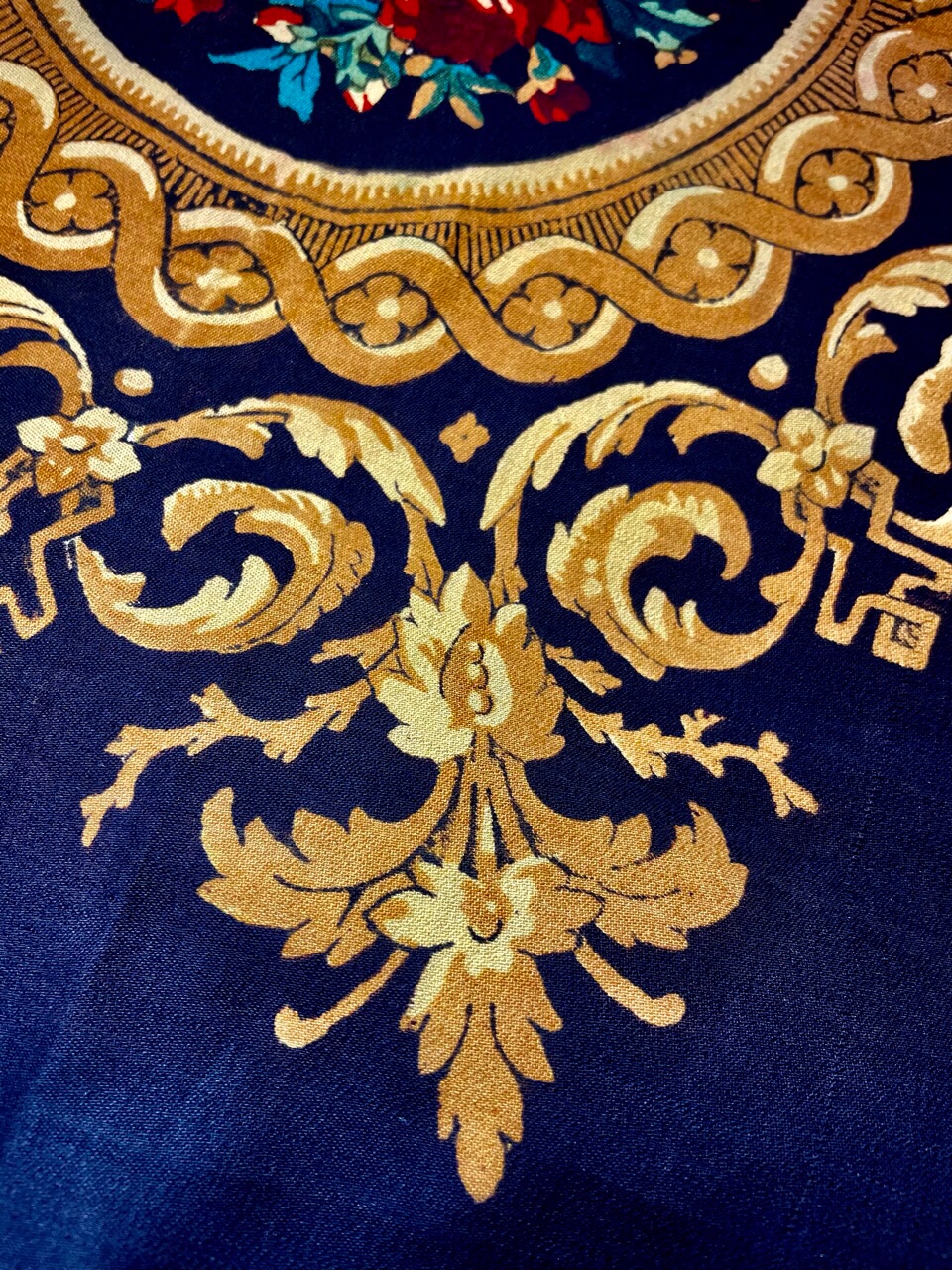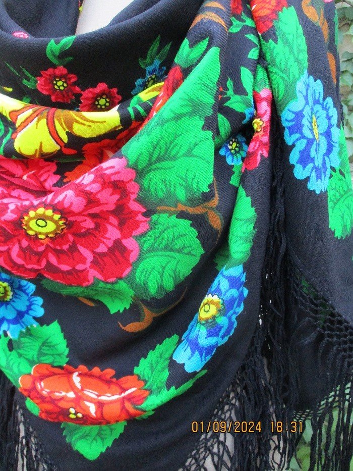 Конечно же мимо пройти не удалось и эта шаль поселилась в моей коллекции. Так как клейма нет и время производства не установлено, то размещаю здесь, а не в «Дореволюционных шалях»