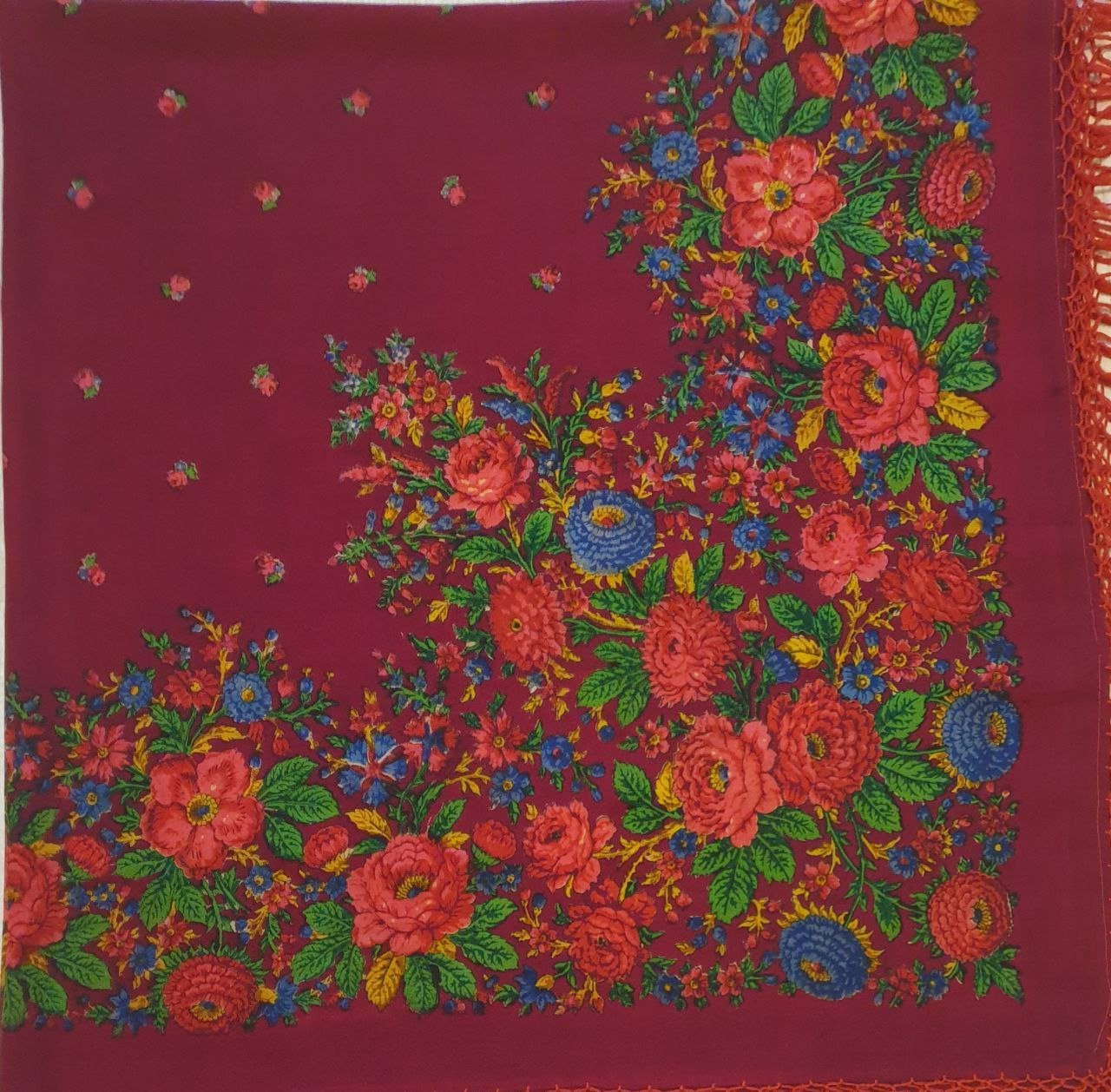 Тоже засматривалась на эти платочки - какие чудесные васильки на красном шерстяном! Но аналогов не нашла, может, плохо смотрела. В любом случае - великолепные платки!