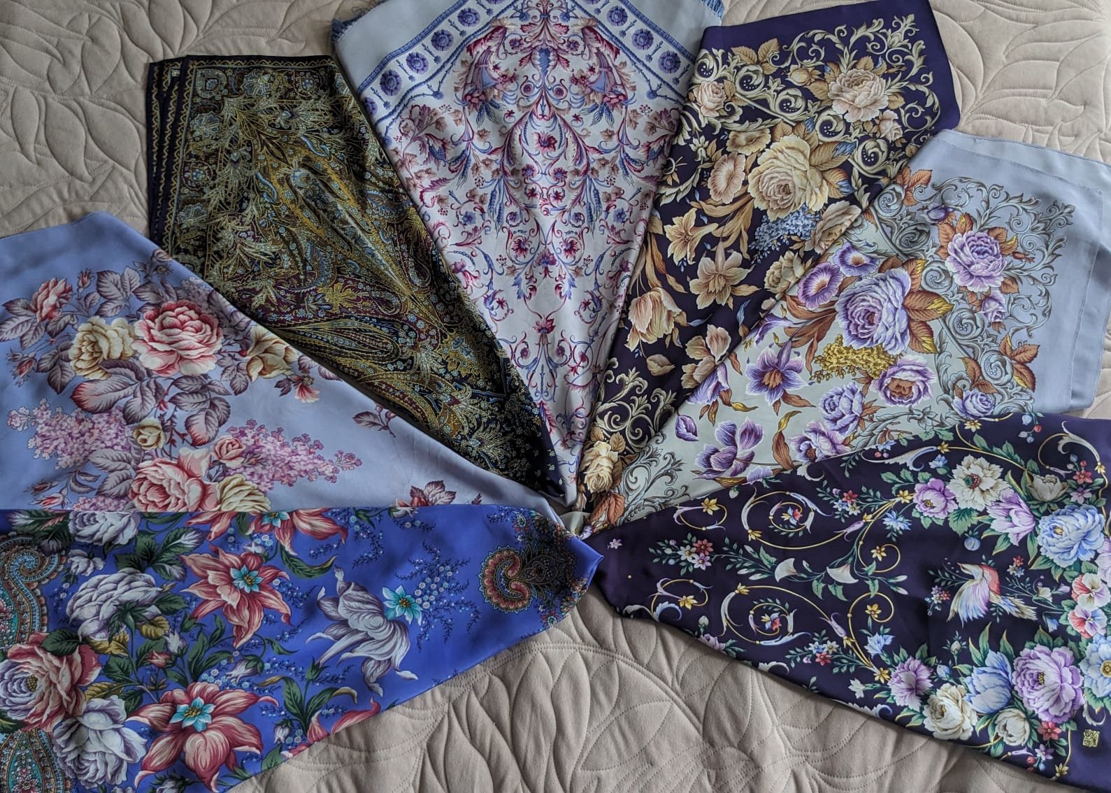Шёлковые шали покажу по цветам.Планирую 9 глав.