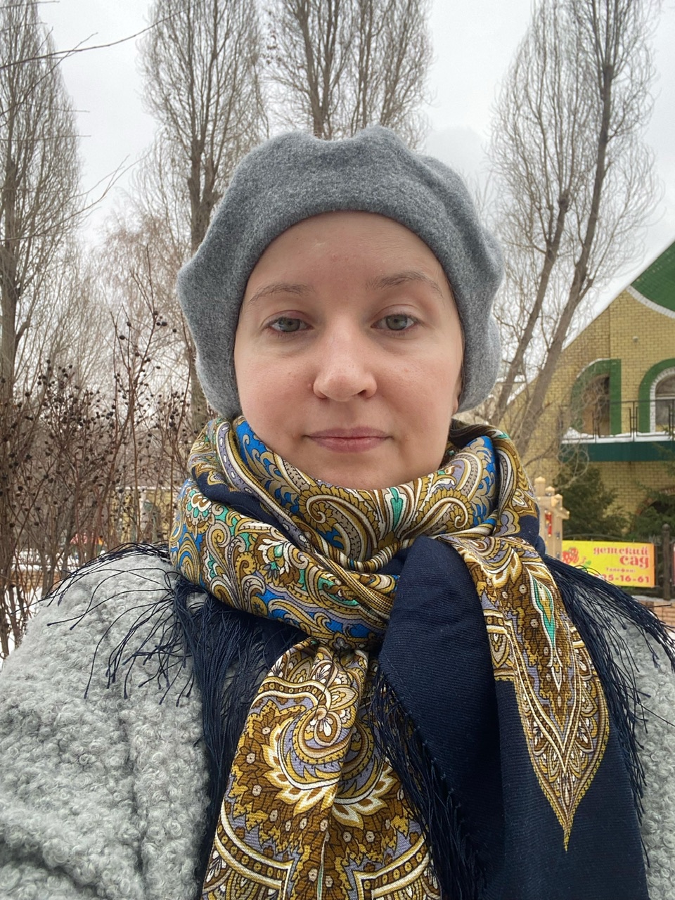 Ах, Марина, как хорошо И сочетание цветов красивое, и Вам очень идёт. Очень! Спасибо за показ! А я и внимание никогда не обращала на этот платок