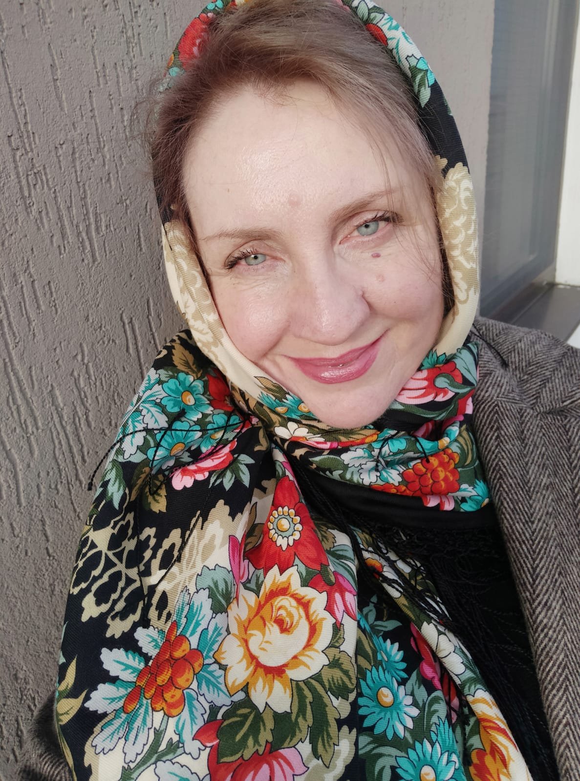 Ах, Марина, как хорошо И сочетание цветов красивое, и Вам очень идёт. Очень! Спасибо за показ! А я и внимание никогда не обращала на этот платок