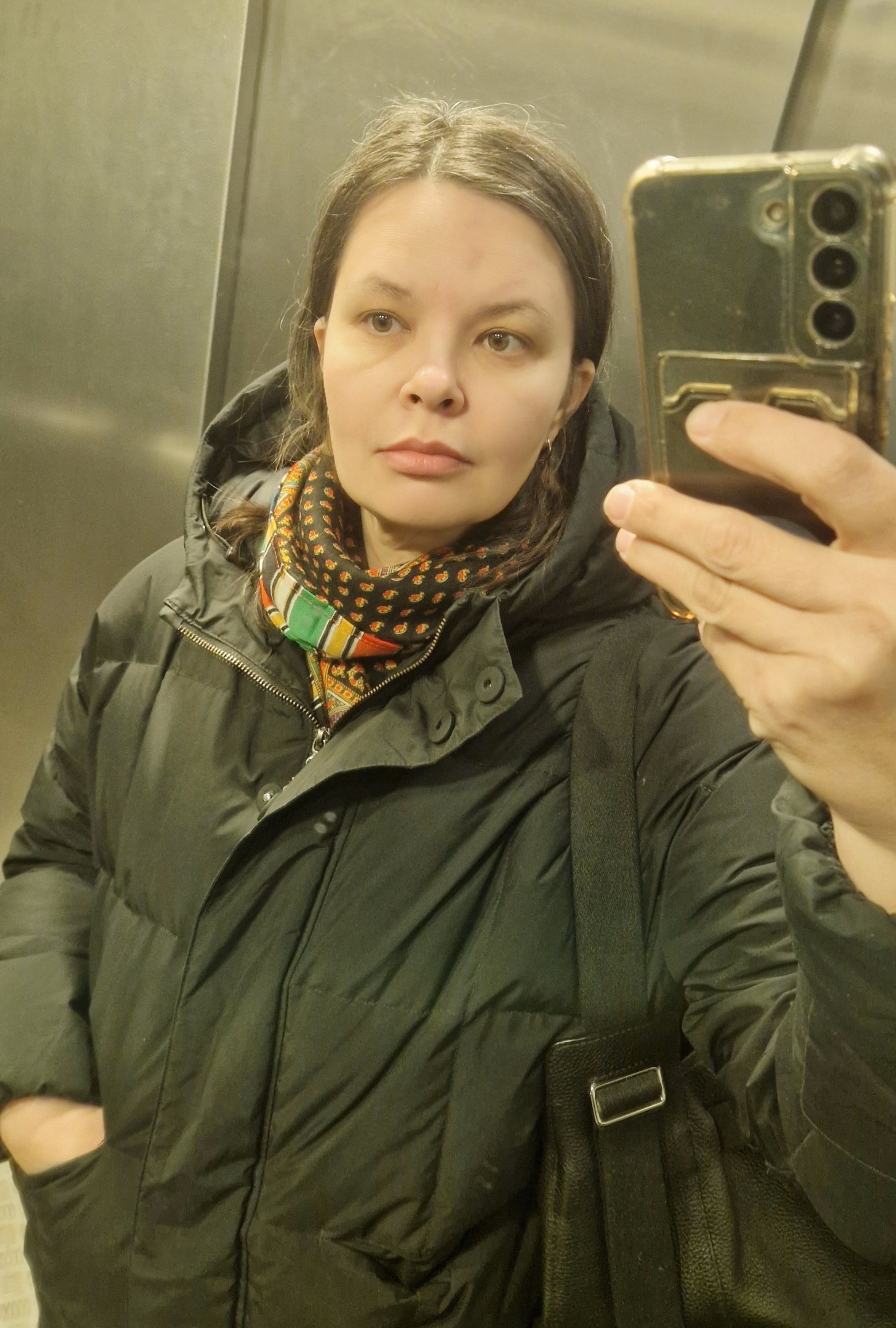 Ах, Марина, как хорошо И сочетание цветов красивое, и Вам очень идёт. Очень! Спасибо за показ! А я и внимание никогда не обращала на этот платок