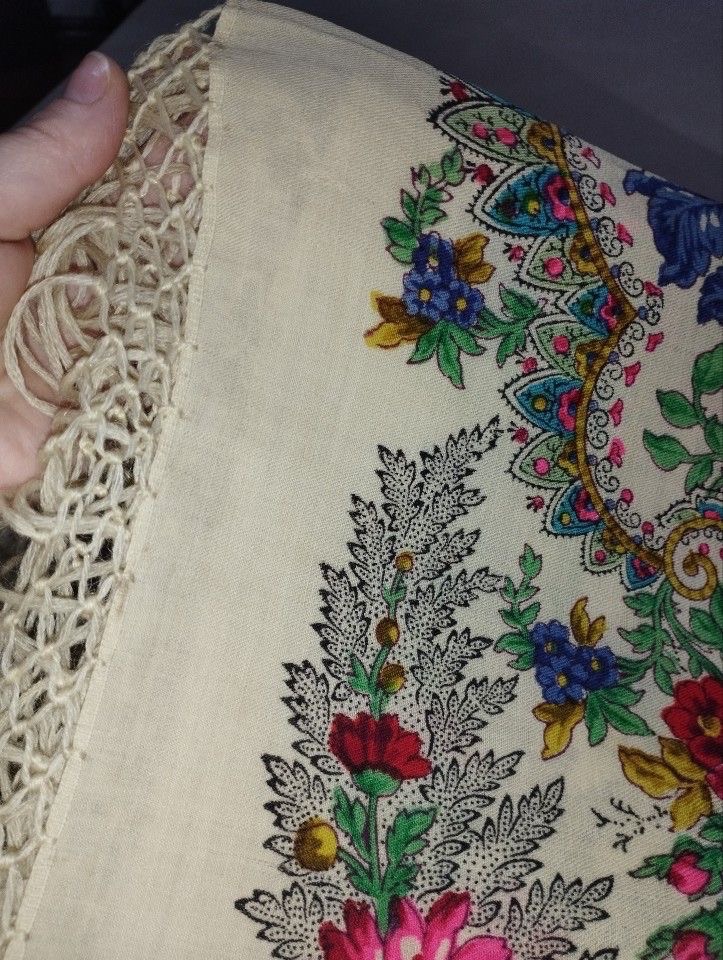 Попросила продавца прислать подробные фото ППД_219 и сравнила с шалью из книги. Сложно их сравнивать. И фото, а уж тем более печать в книге, вероятнее всего не передают истины по цветам. Последние фотографии углами мне кажутся наиболее правдоподобными. По розовому цвету это точно период анилиновых красителей и, вероятнее всего, уже ХХ век. Клейма на изнанке я не увидела. Бахрома, как мне кажется, перевязана позже. А вот просновки на ткани совершенно такие же, как и в музее. Возможно, что цвета шали в книге не соответствуют действительности. Это сложности печати. Прямо хоть выдвигайся в музей для сравнения!
