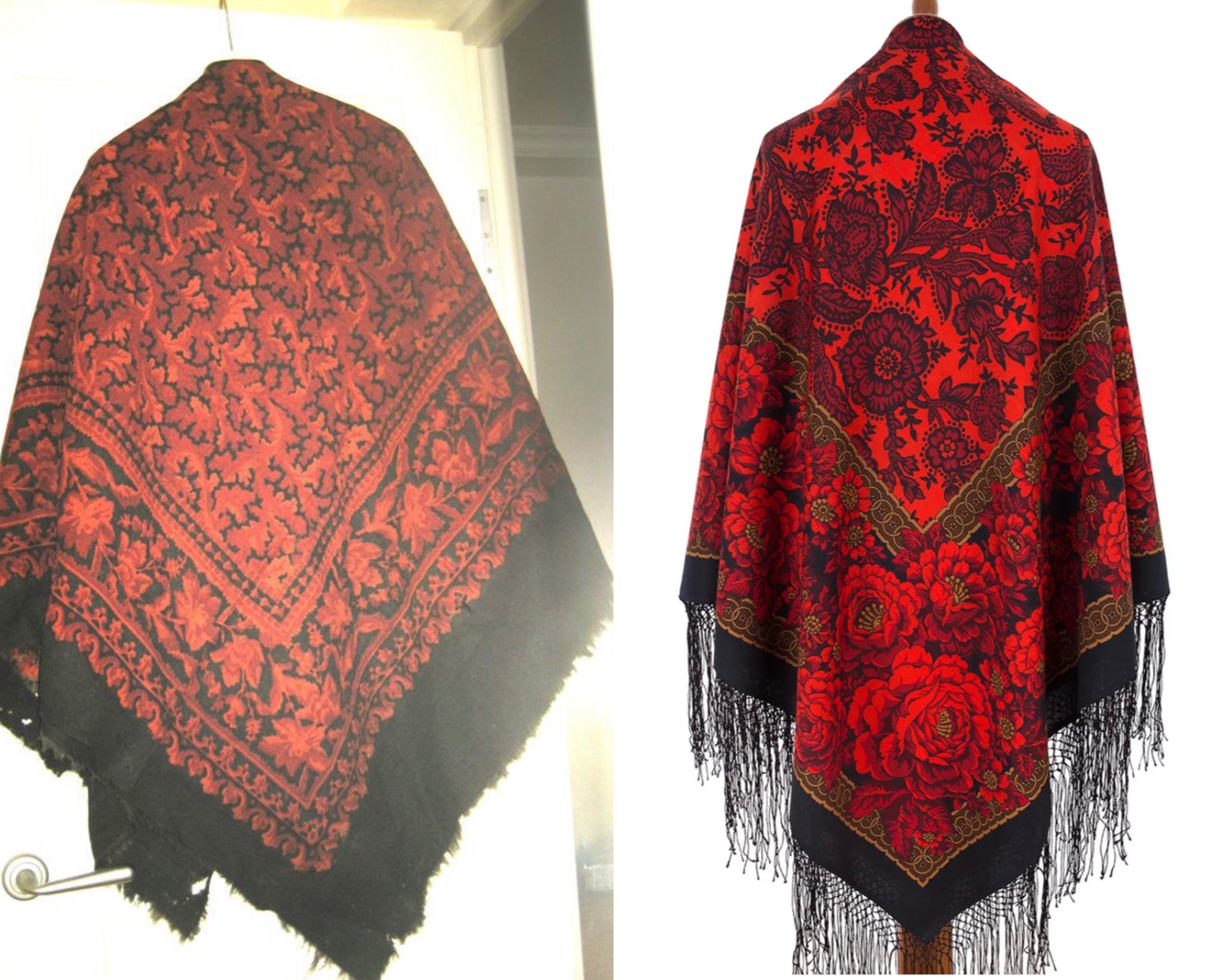 Не могу сказать, какой вариант сложнее по рисунку. Но эта история ещё раз подтверждает то, что шали по одному рисунку печатали на разных предприятиях. Возможно, была договоренность о том, что необходимо вносить изменения. Прямо хочется вживую сравнить эти шали. Будем искать…