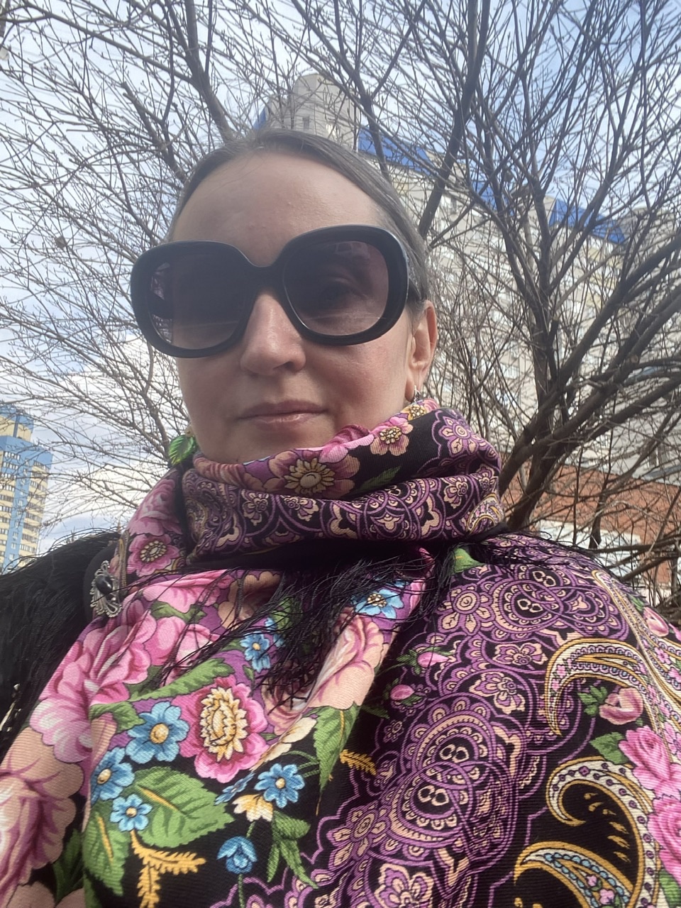 Вот да, обе Марины с сиреневыми тонами, у одной пальто, на котором особенно эффектны золото и терракота, у другой такой нежный, весенний платок. Только, Мариша, я не поняла, зачем тебе кайму убирать? Мне кажется, тебе ее цвет просто идеально подходит. Вообще этот платок - весенняя версия тебя